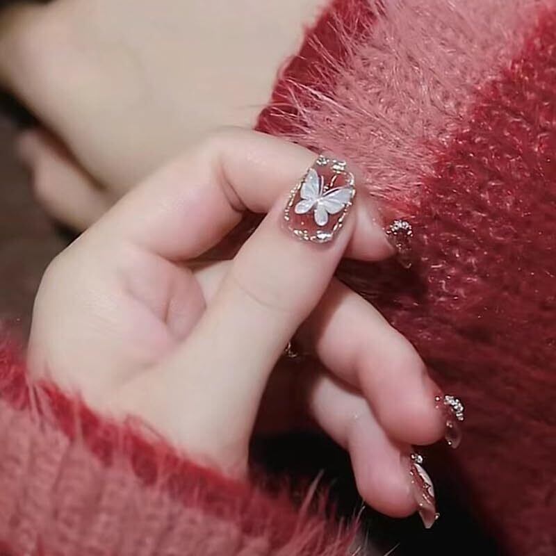 ネイルチップショート 秋冬 3D爪 ネイルプレス 手作りレッド系 赤 ネイルチップ 繰り返し使える 成人式 新年 正月 入学式 卒業式 日常生活 花嫁ネイル 中式結婚式 ネイルチップ かわいい レッド ネイルチップ 人気 光沢 レディース (蝶, Free Size)