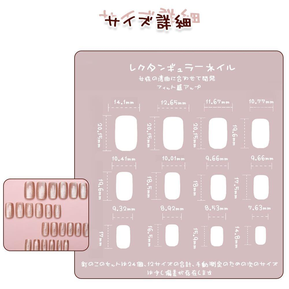 猫眼マグネット ピンクバレエ風ネイルチップ 24枚セット ショートタイプ ジェルネイル付き 可愛い シンプル 付け爪 光沢 マグネットネイル 秋冬 人気 和風 花嫁ネイル 成人式 結婚式 パーティー ネイルチップセット 両面テープ ウッドスティック付き