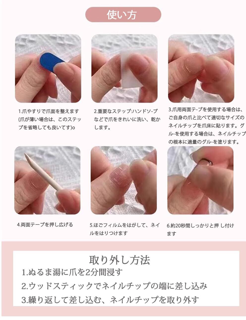 【品質】完全手作りのネイルチップは高品質アクリル素材を使用 無害無臭で全ての方に適し 耐久性が高く繰り返し使用可能。最短時間・最小コストで高級ネイルを体験でき スタイルチェンジが容易で装いに最適です