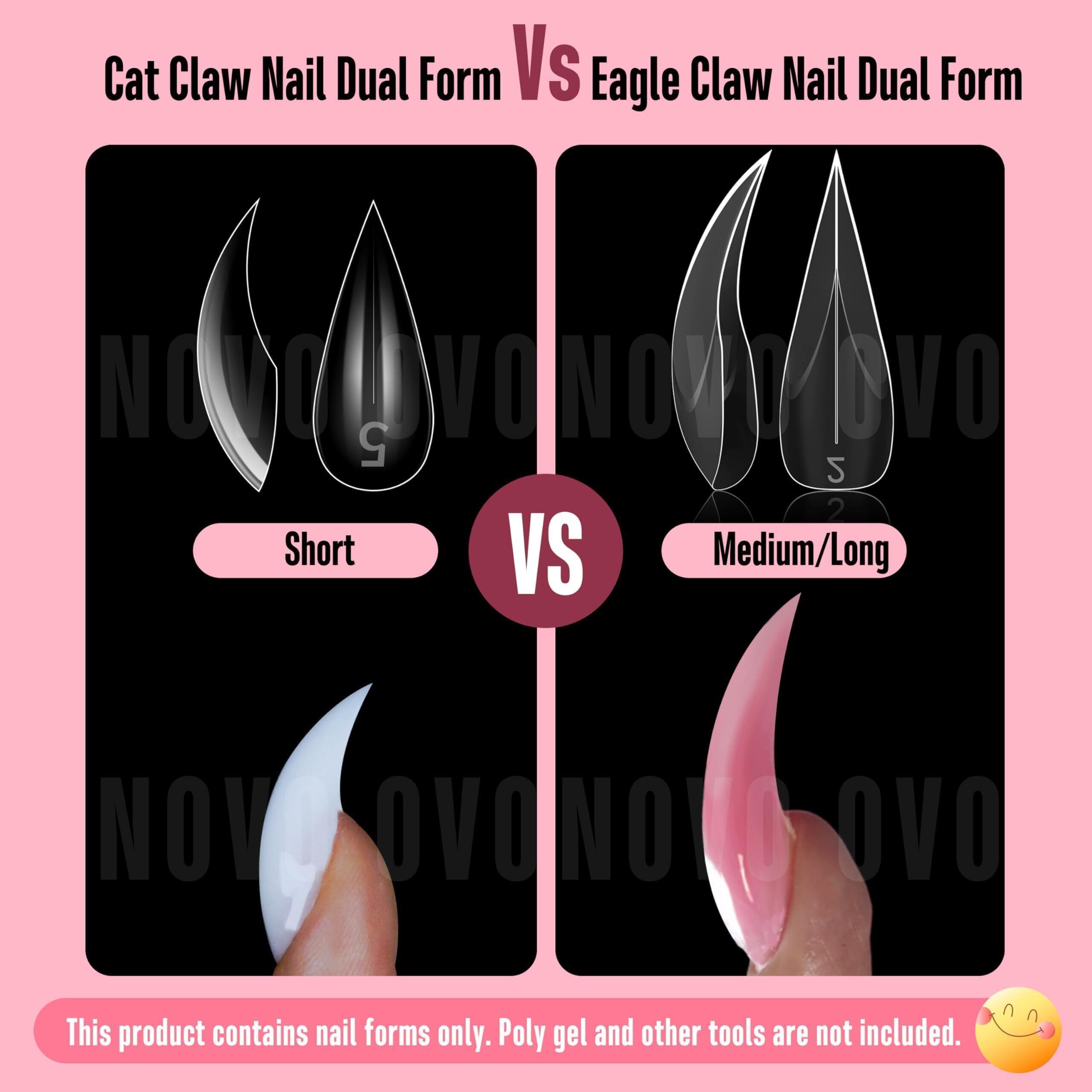NOVO OVO ショートカーブドスティレットネイルデュアルフォーム、3Dイーグルキャットクロー用ポリジェル延長、ホークカーブ立体アクリルネイル、再利用可能なフルカバーモールド、ハロウィンネイルアートデザイン、280ピース14サイズ