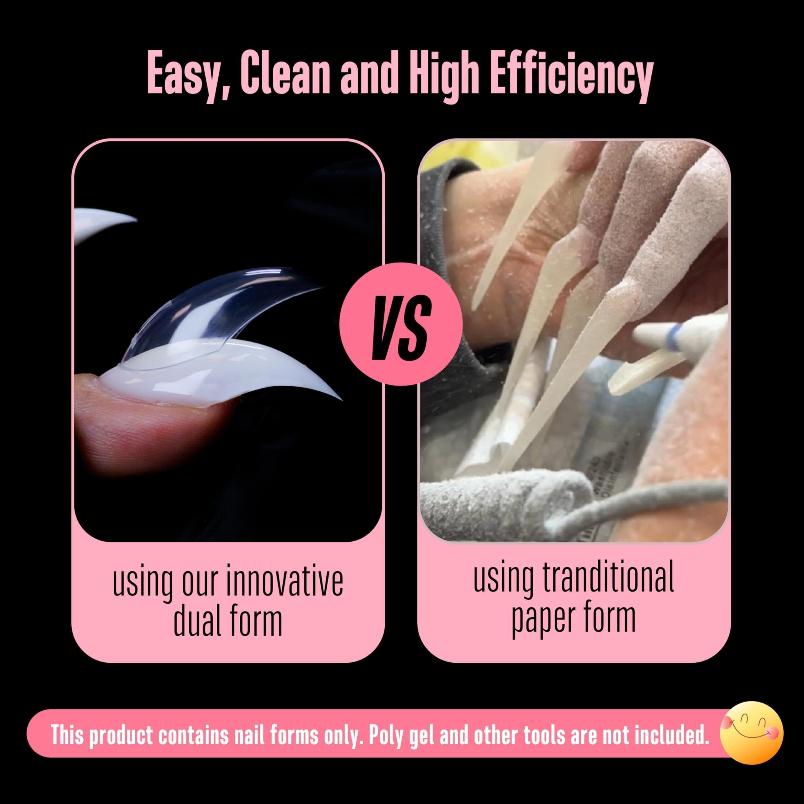 最適な3D形状とカーブで利便性を追求:デュアルフォームは、完璧なネイルエクステンションを実現する理想的な長さとカーブを誇ります。アクリルパウダーで1時間かけて形を整え、さらに1時間かけてファイルで仕上げる必要はもうありません。ネイルアーティストは貴重な時間を節約し、複雑なネイルデザインに集中できます。ギフトや特別な機会のための華やかなネイルデザインも思いのままです。