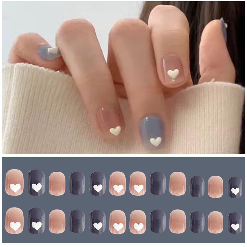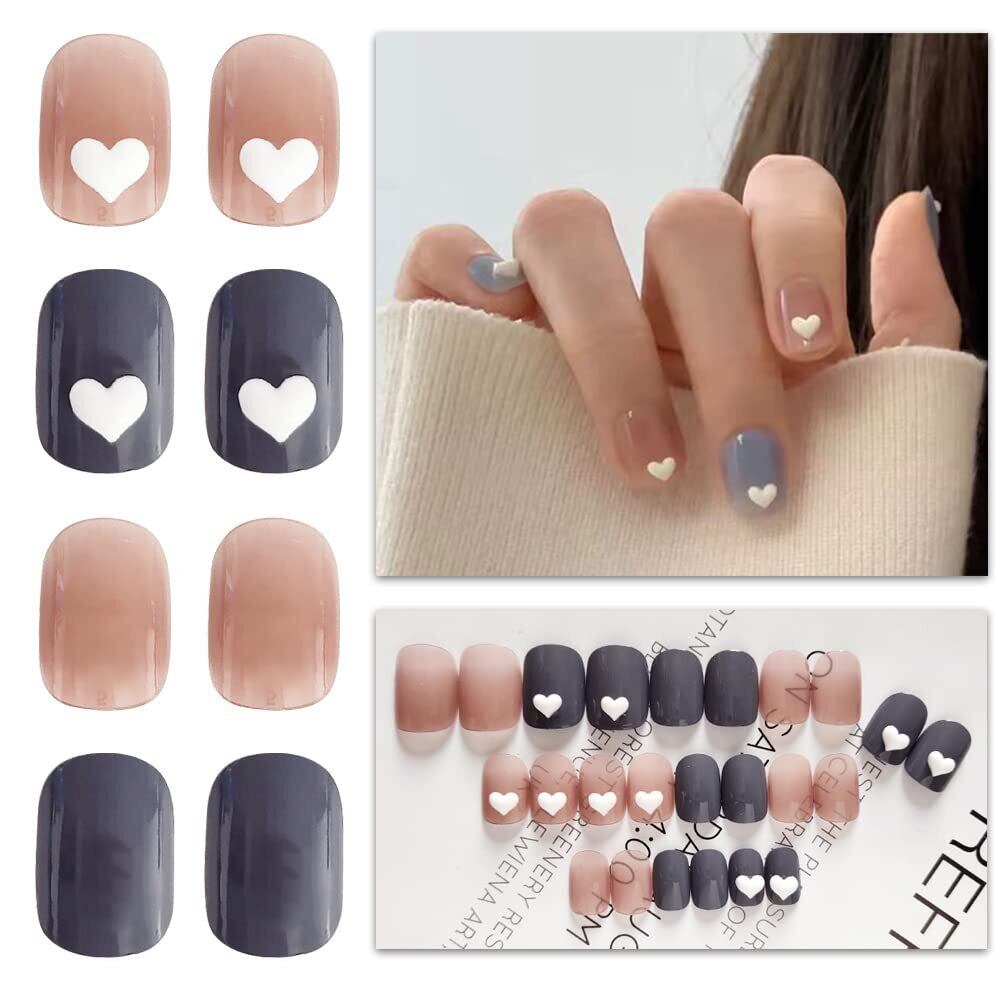 AAGWW ネイルチップ ベリーショート 付け爪 短い 成人式 マット つけづめ つけ爪 付け爪 ネイルちっぷ かわいい 美甲 用品 工房 糊デザイン(製品の内容:24枚ネイルアート +糊 色:ホップカラー、ハート)