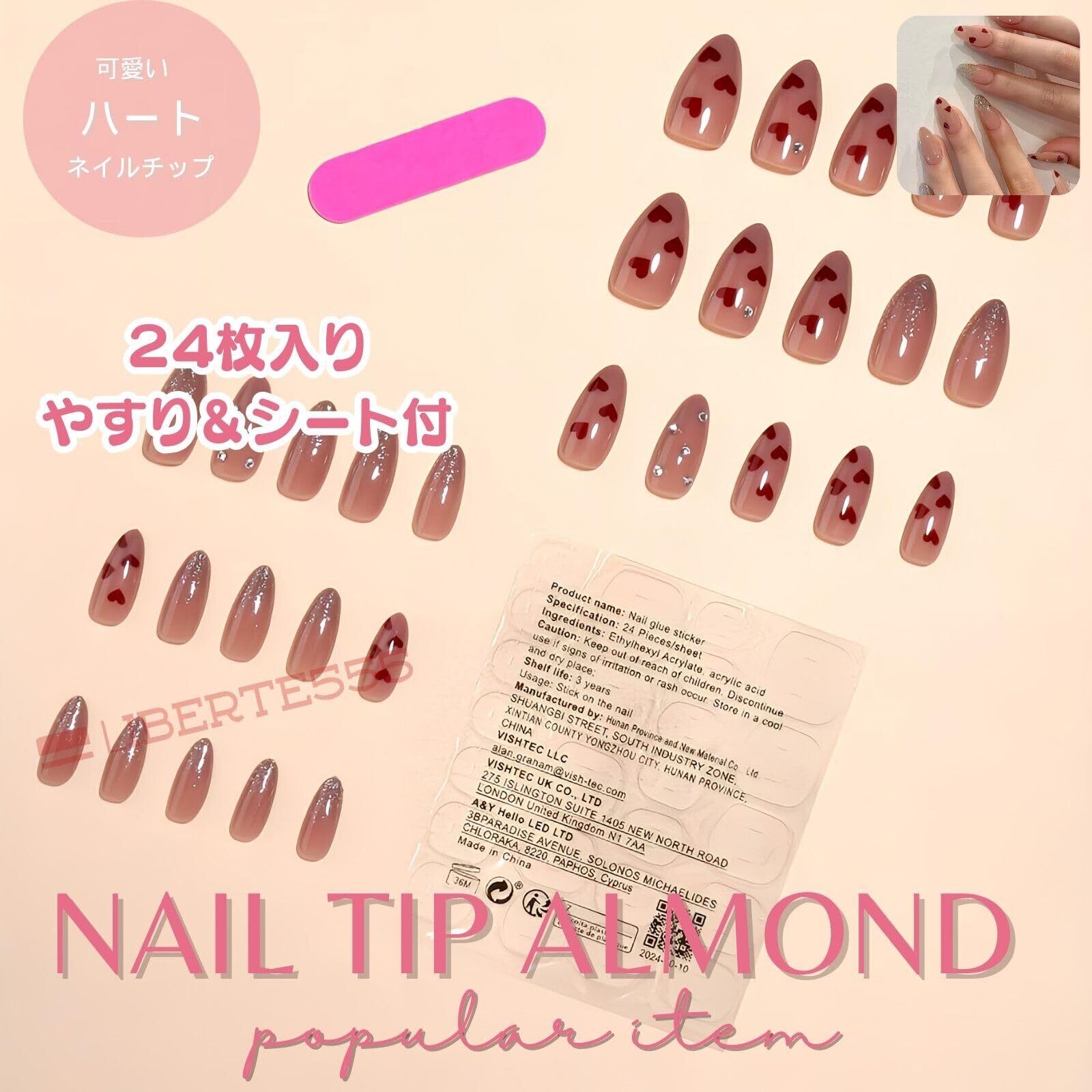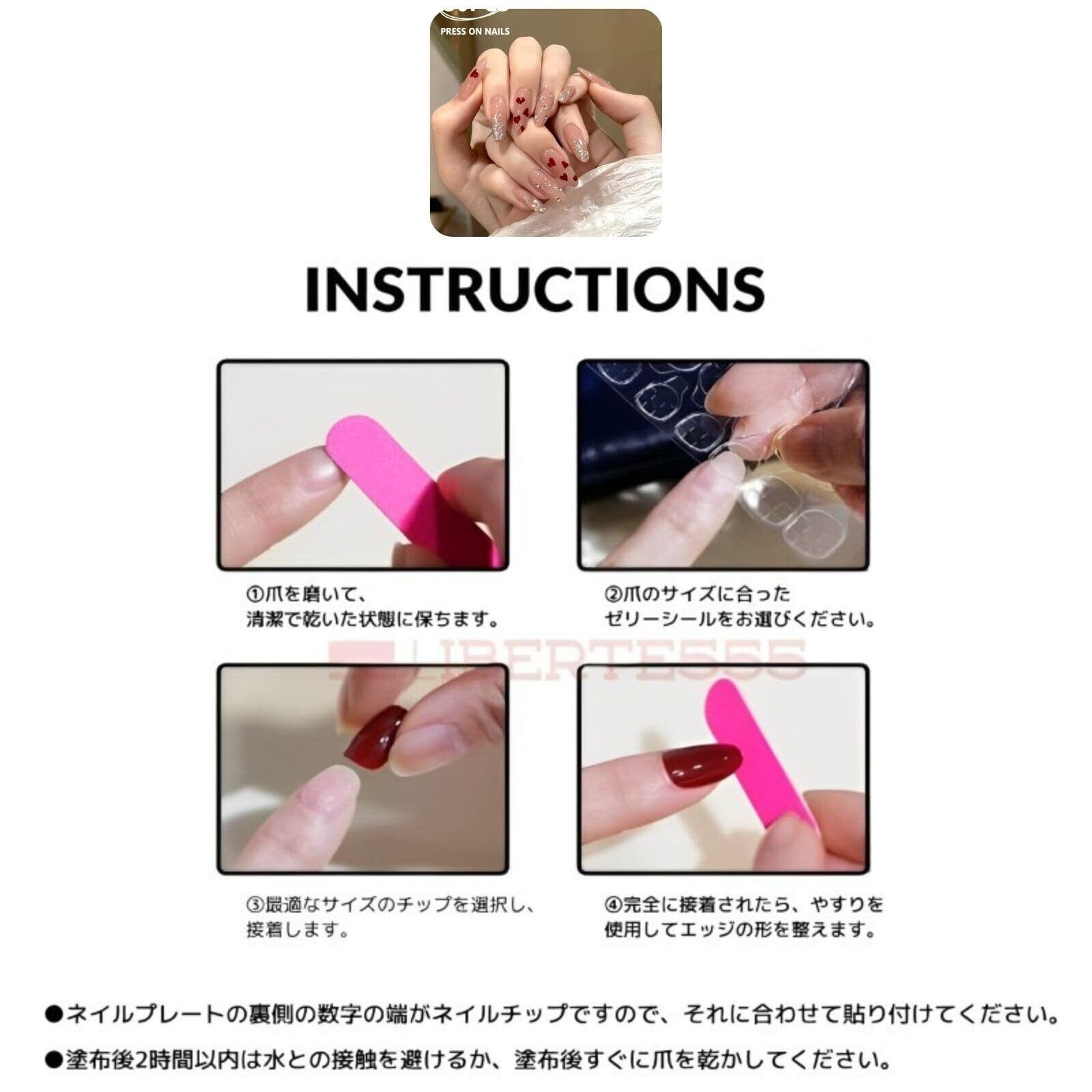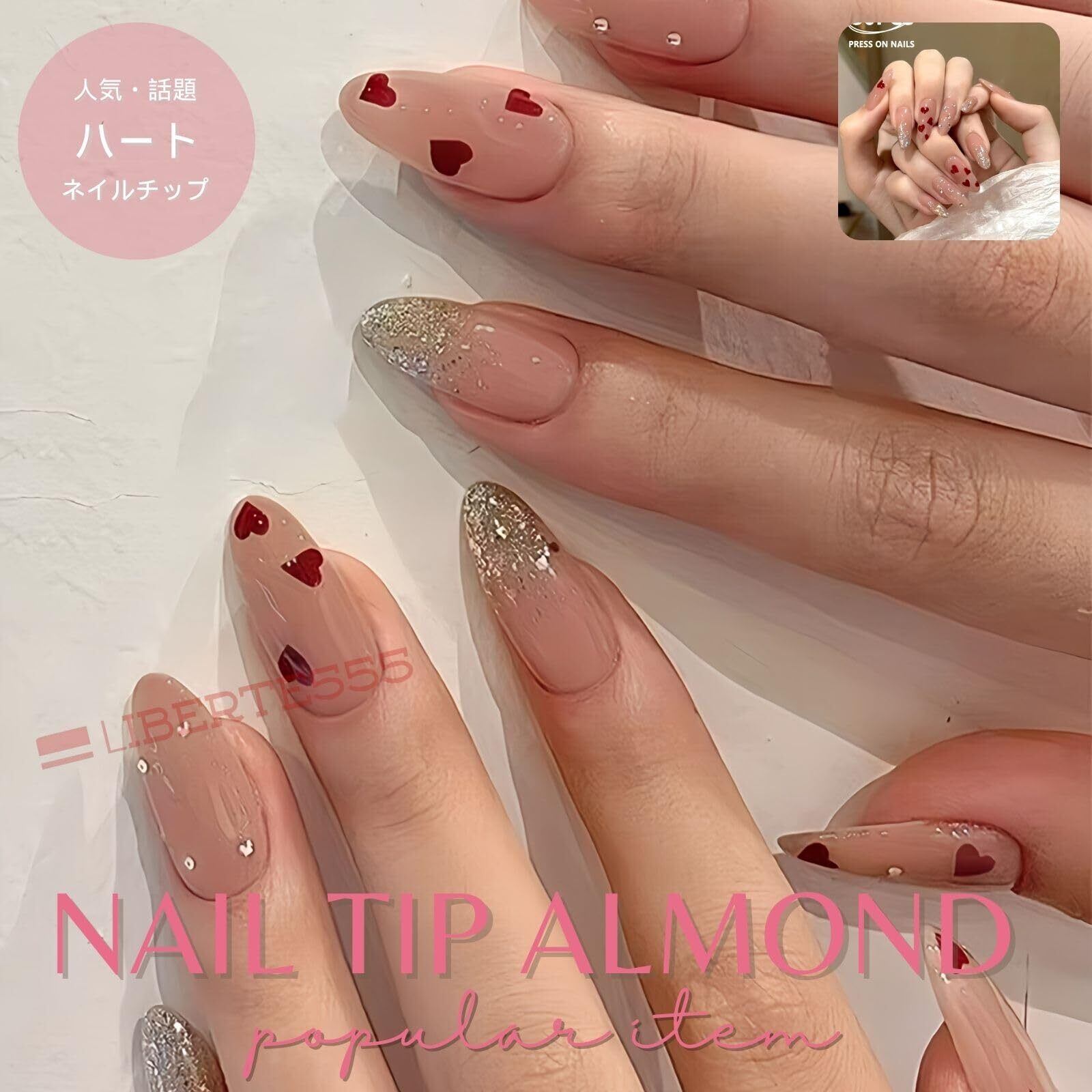 ネイルチップ ハート バレリーナ ロング 韓国 ギャル 可愛い フレンチ つけ爪 nail コギャル グッズ (レッド3, ロング)