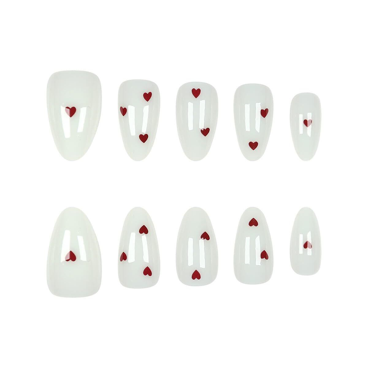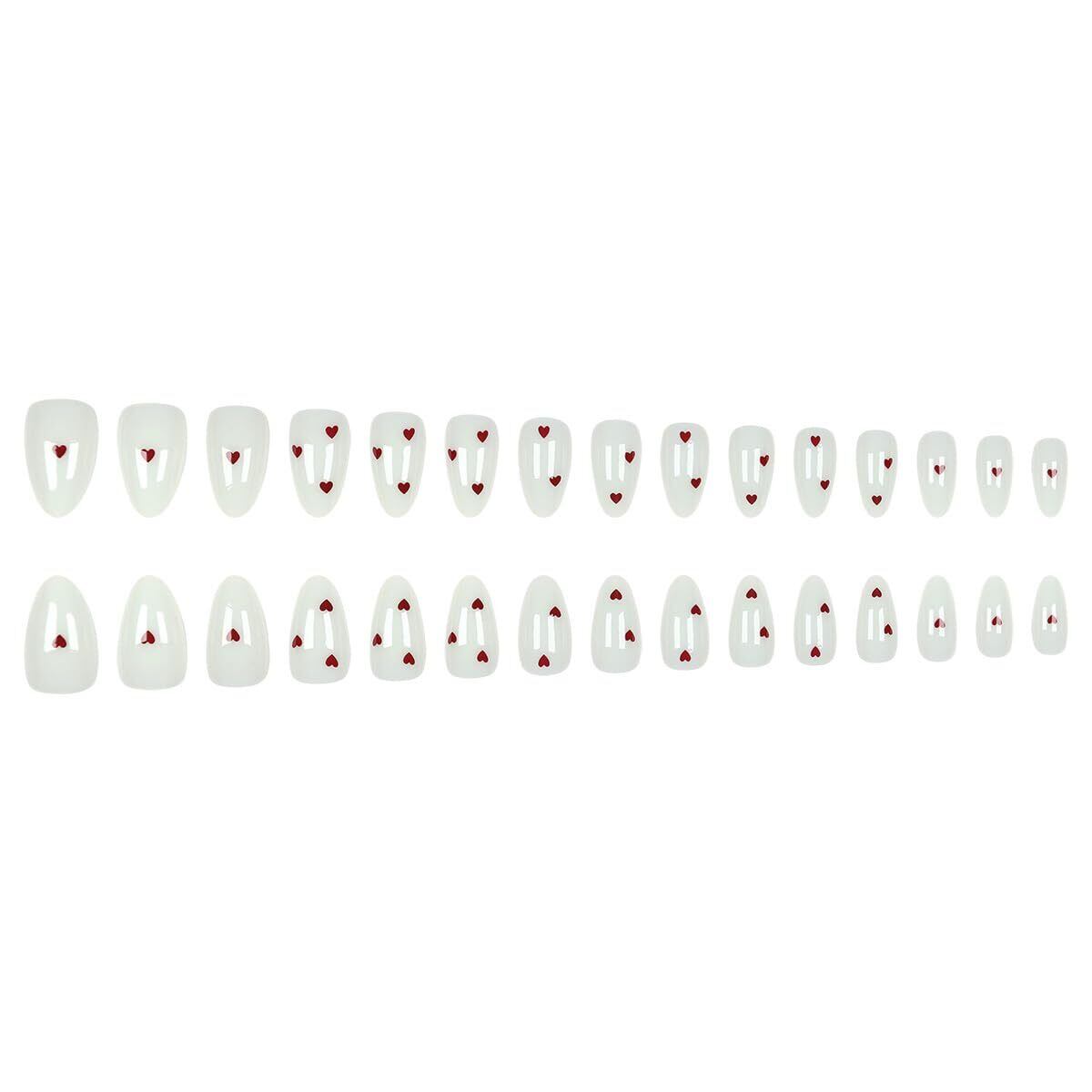 ホワイトと赤のハートネイル ネイルチップ オーバル ミディアム ロング つけ爪 ラインストーン 付け爪 人気 かわいい シンプル おしゃれ ファッション 30枚入 和風 花嫁ネイル 光沢 つけ爪 結婚式