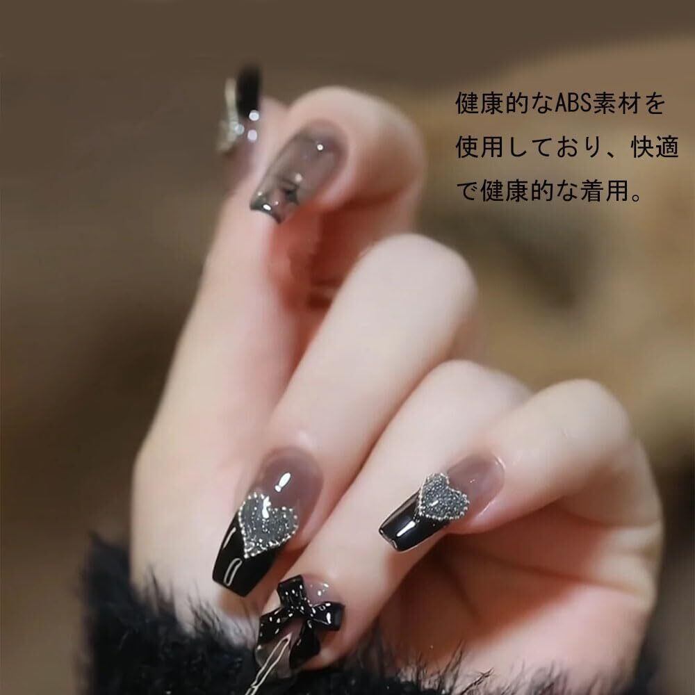 ネイルチップ ネイルシール つけ爪 3D ネイルチップ ネイルアートパッチ ネイルチップ 短め ネイルチップ 24枚入 手作りネイルチップ つけ爪 ネイルチップ 結婚式 花嫁ネイル 和風 光沢 つけ爪 (ブラックP-081, M)