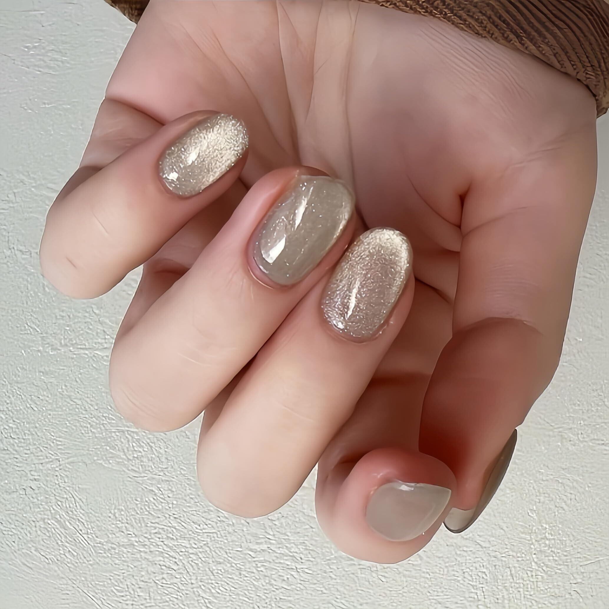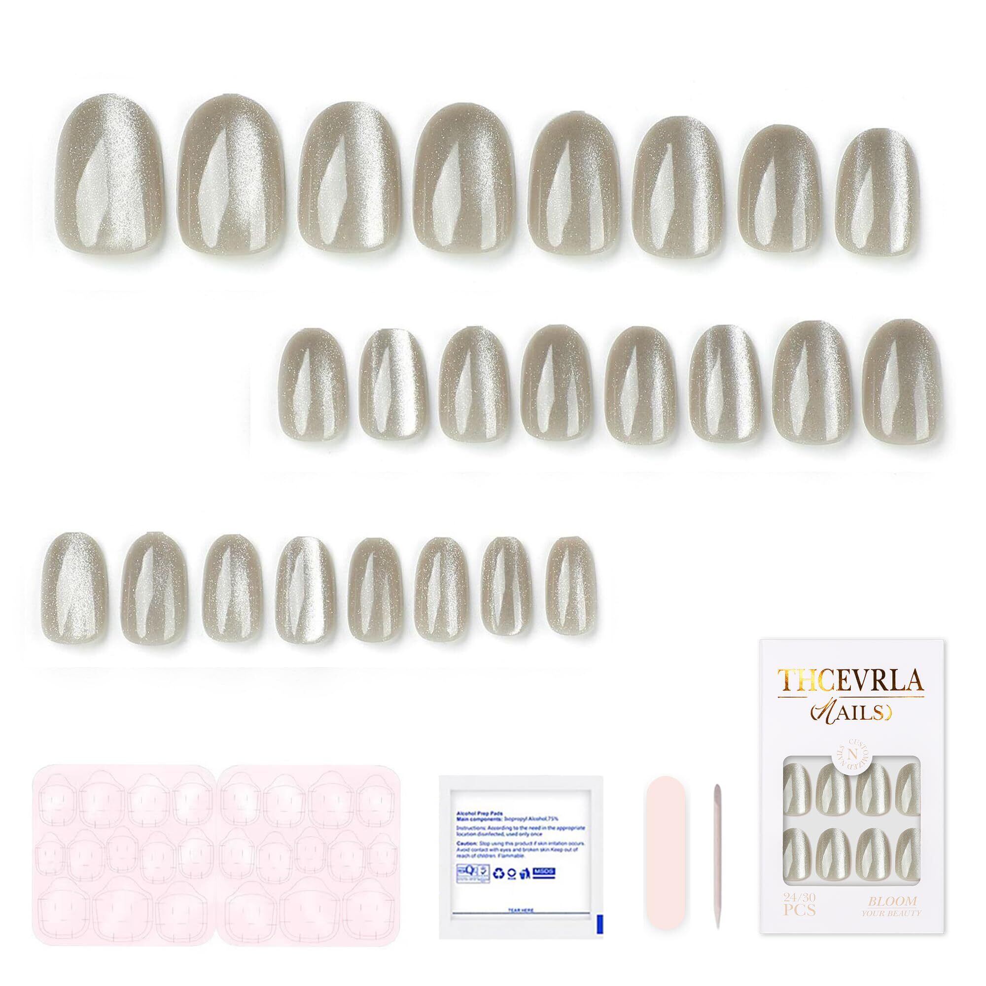 ネイルチップ - シャンパンオーバル 手作りネイルチップ ショートク,キャッツアイ マグネット おしゃれ 付け爪ゲル化,ツールキットが付属しています,24枚入