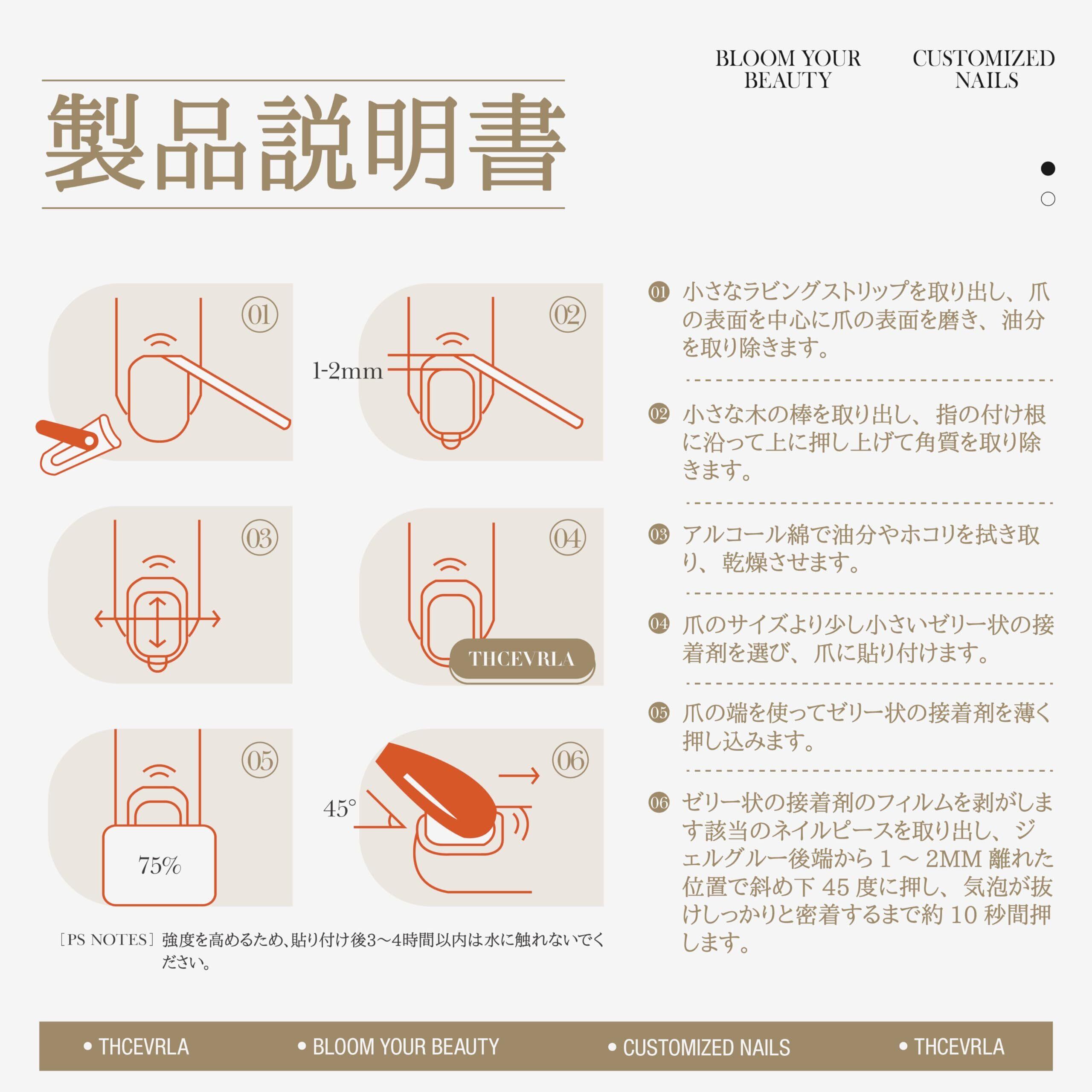 【もらえるもの】ネイルチップ(24個)、両面テープ、クリーニングワイプ、木製スティック、ファイル。 使用するツールはすべて同梱されており、受け取ってすぐに使用できます。