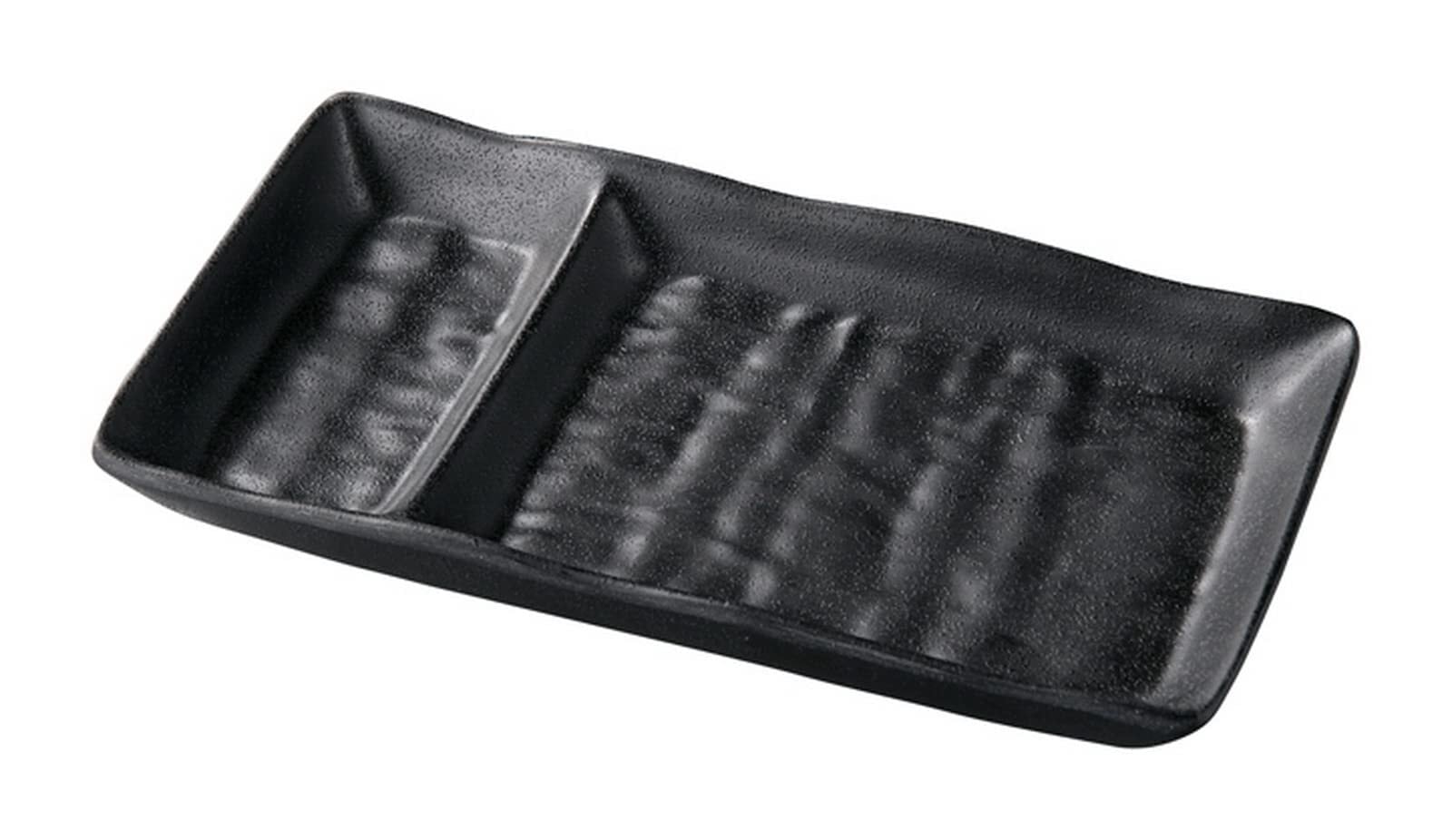 福井クラフト メラミン 17.8 ひねり タレ付 ナタ目 長角 皿 黒マット 51025530