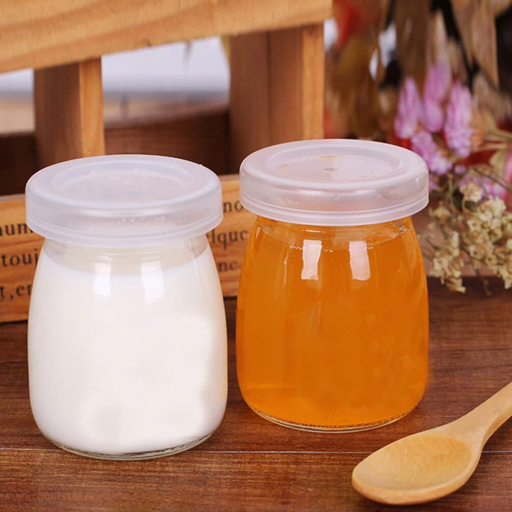NUOLUX ベビーシャワー用プリンボトル ギフトボックス 10個セット プラスチック蓋付き ミニ牛乳瓶型 キャンディーや工芸品の包装に最適 2オンス 透明ホワイト