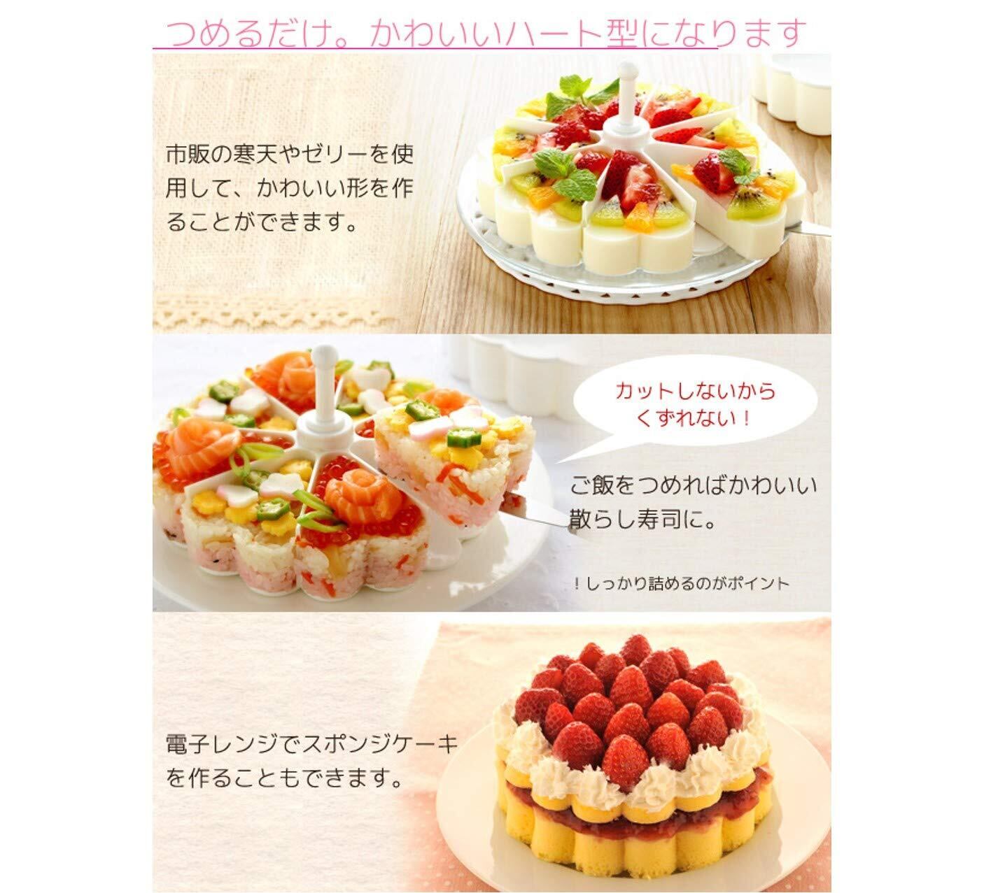 アーネスト ケーキ 型 (ハート形に仕上がる仕切り/ヘラ付き) お寿司・デザート・ゼリーにも (マイパーラー) 大手飲食店愛用ブランド A-31000 本体:約φ185×45mm、仕切り:約φ167×95mm、ヘラ:約15×7×205mm