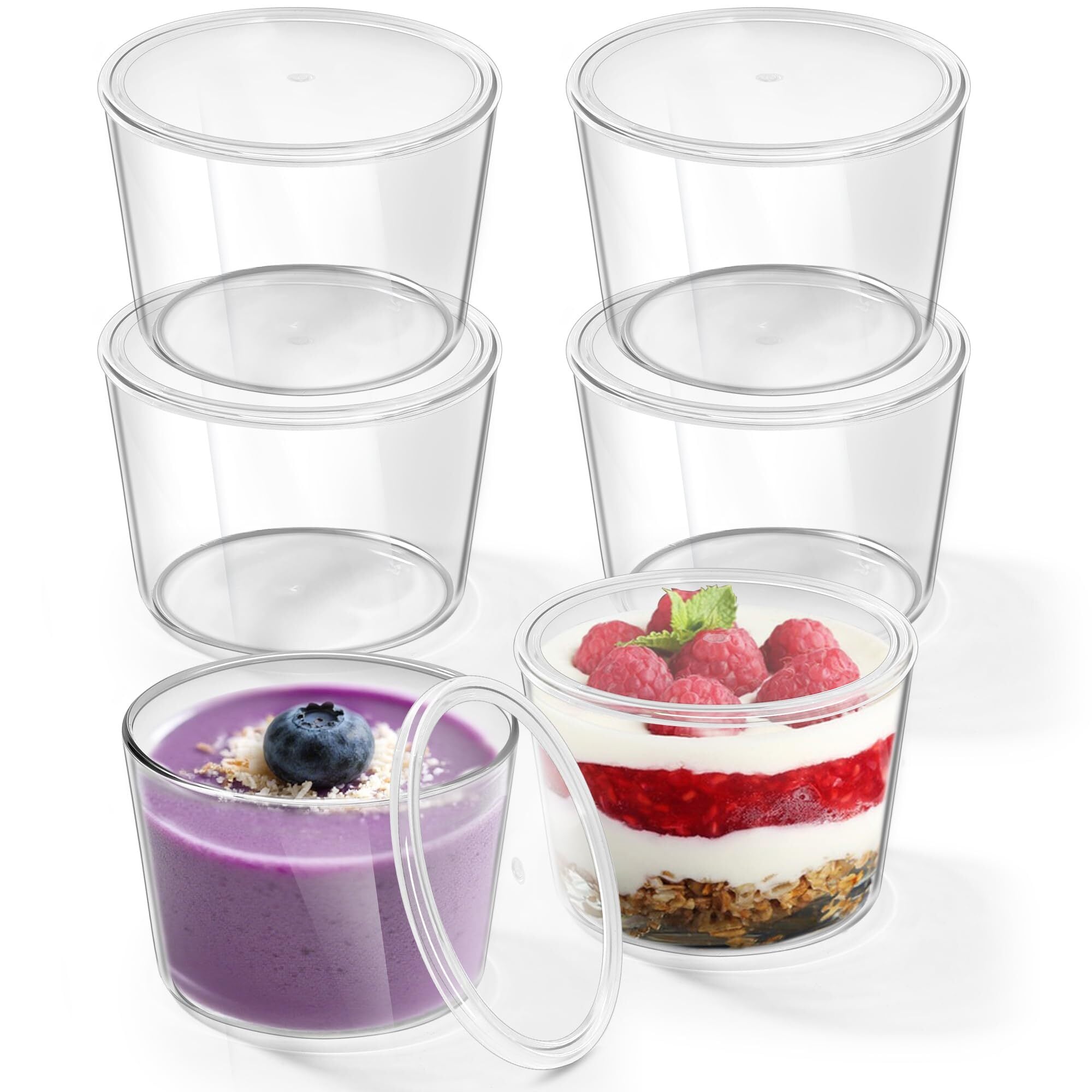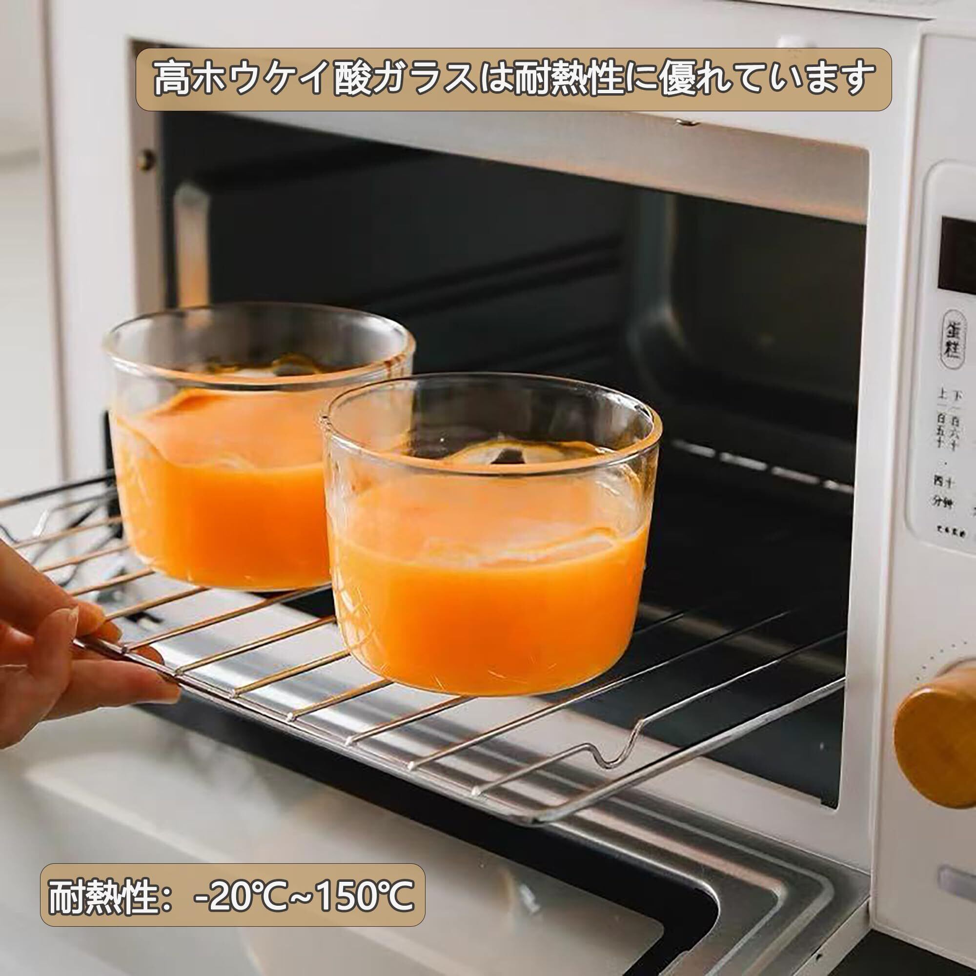 【高品質】このプリン 型は耐熱性ホウケイ酸ガラス製で、-20℃から150℃までの温度に耐え、電子レンジやオーブンにも安心して使用でき、再利用も可能です;蓋はポリエチレン製,密閉性が良い(注:蓋はオーブンや電子レンジには入れられません)。