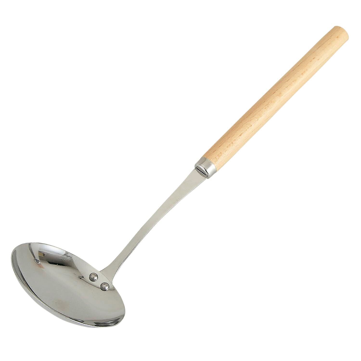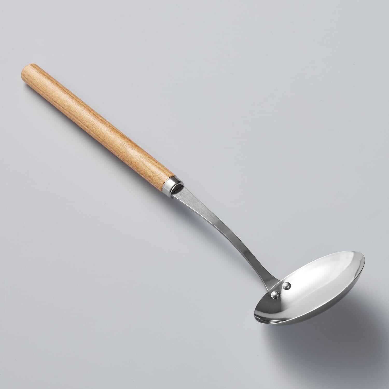 卓上のお鍋の取り分けに便利な、小さめサイズの木柄お玉です。