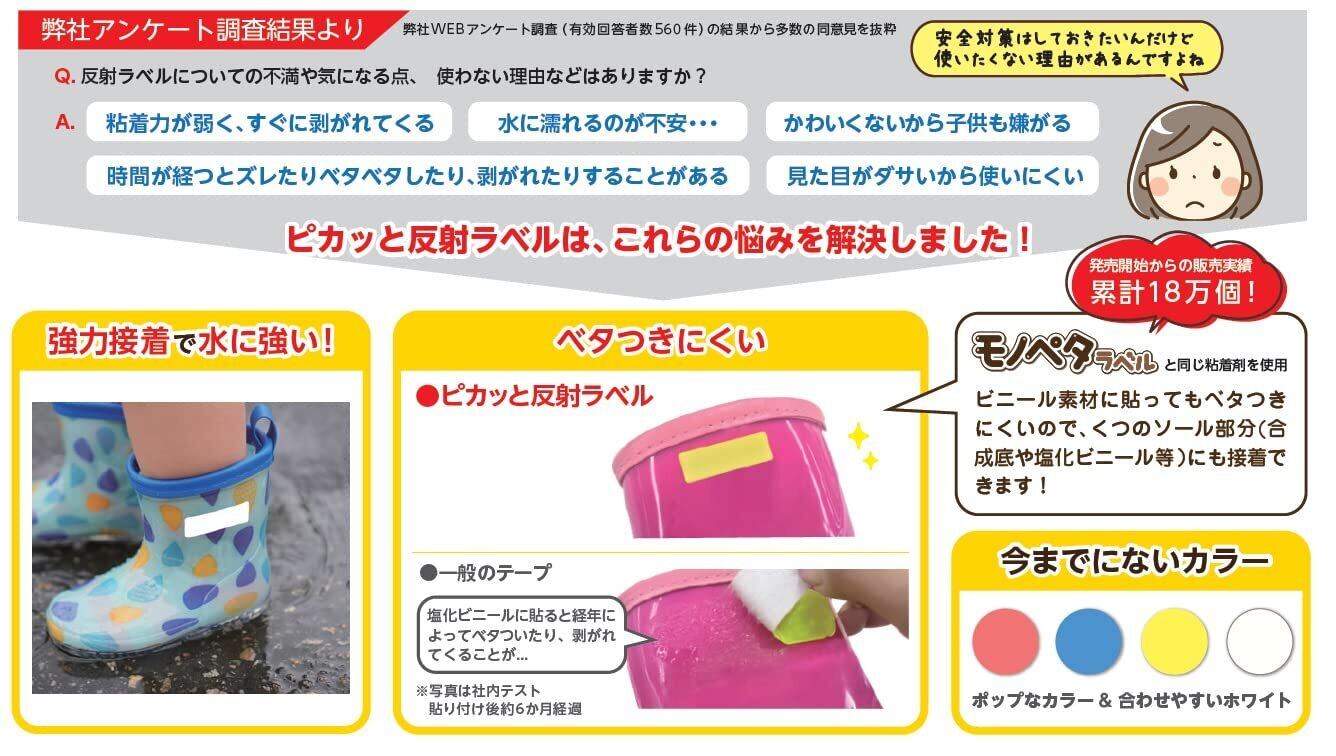 暗い夜道で光って安心! 強力接着で水に強い! 通勤、通学、習い事の帰り道、ウォーキングやペットのお散歩時に