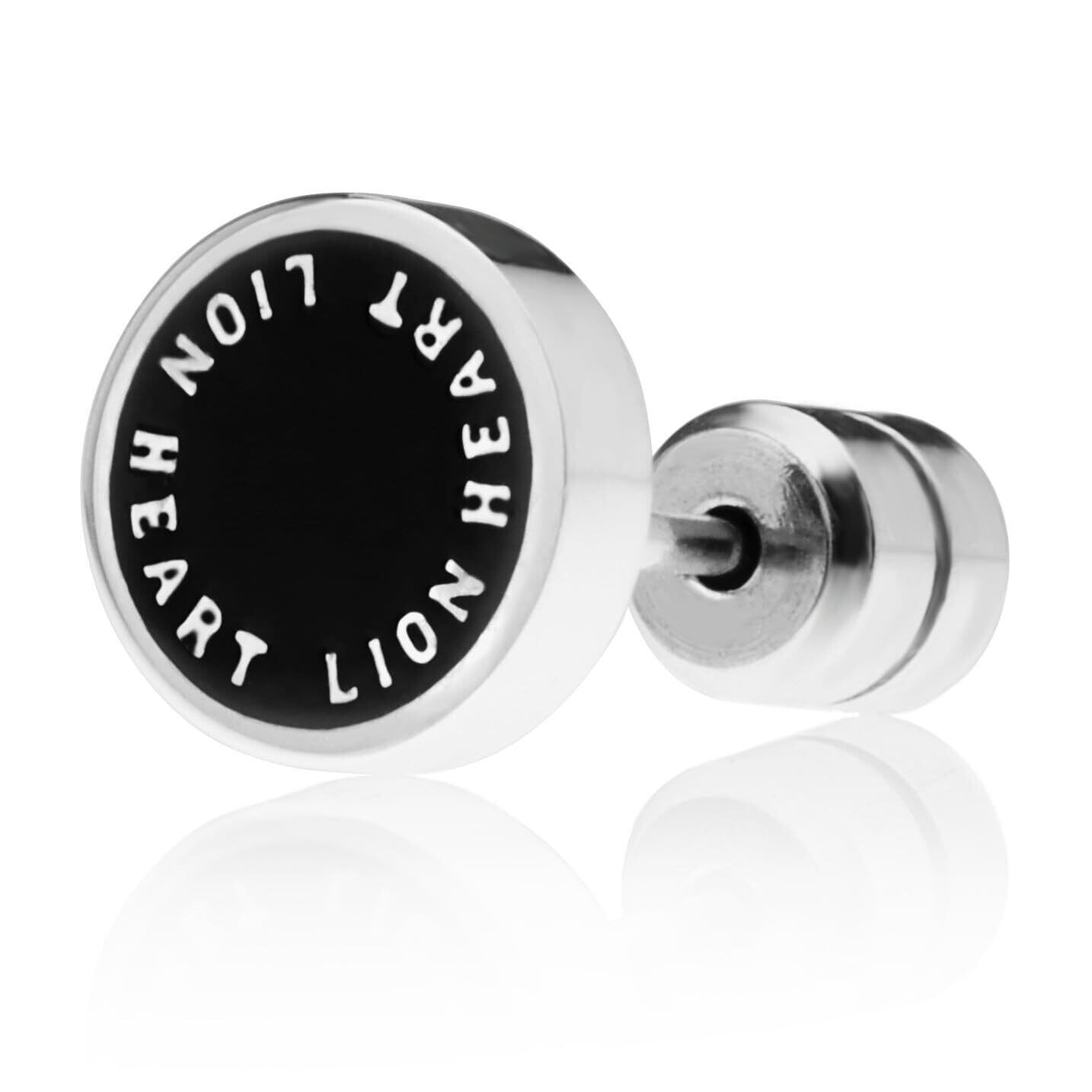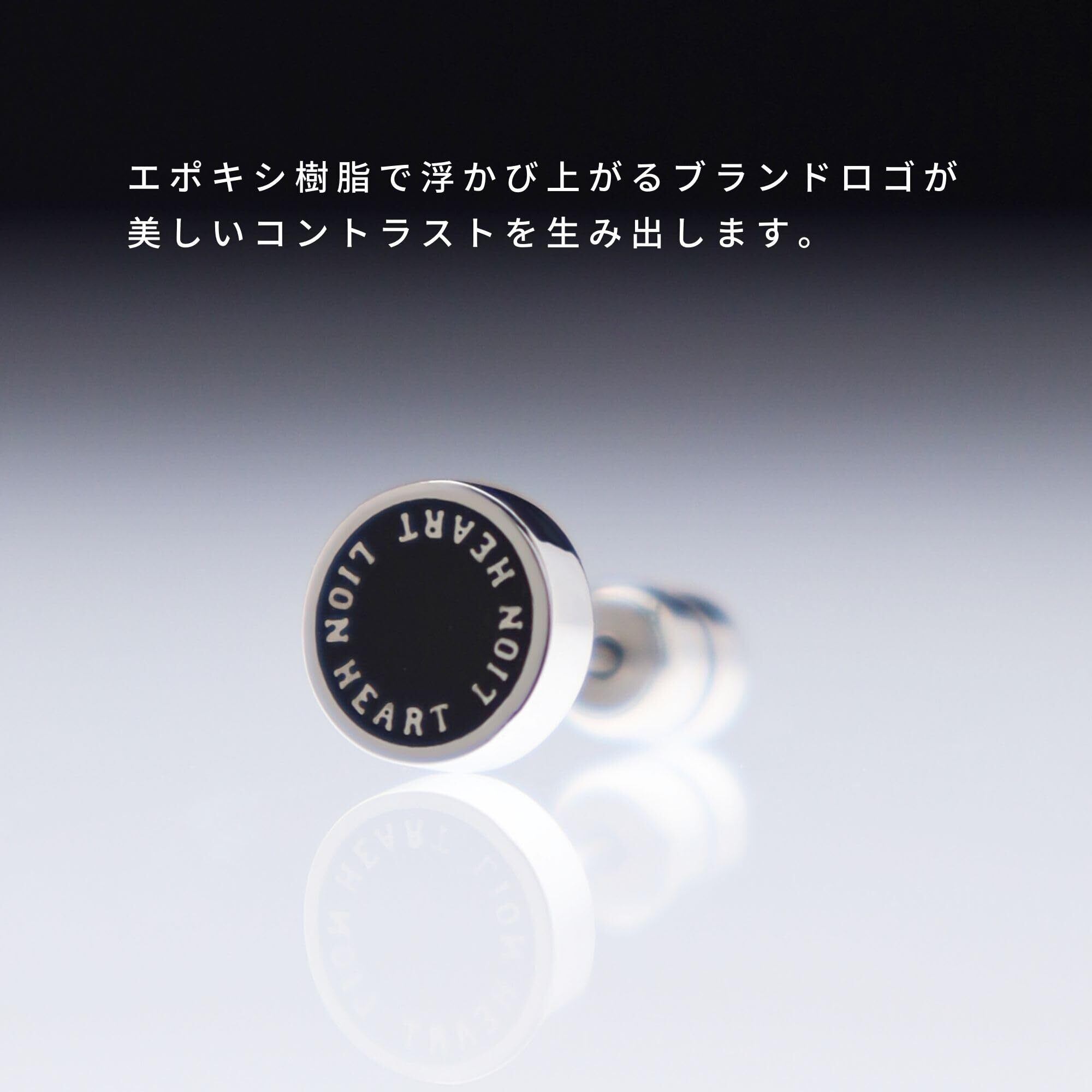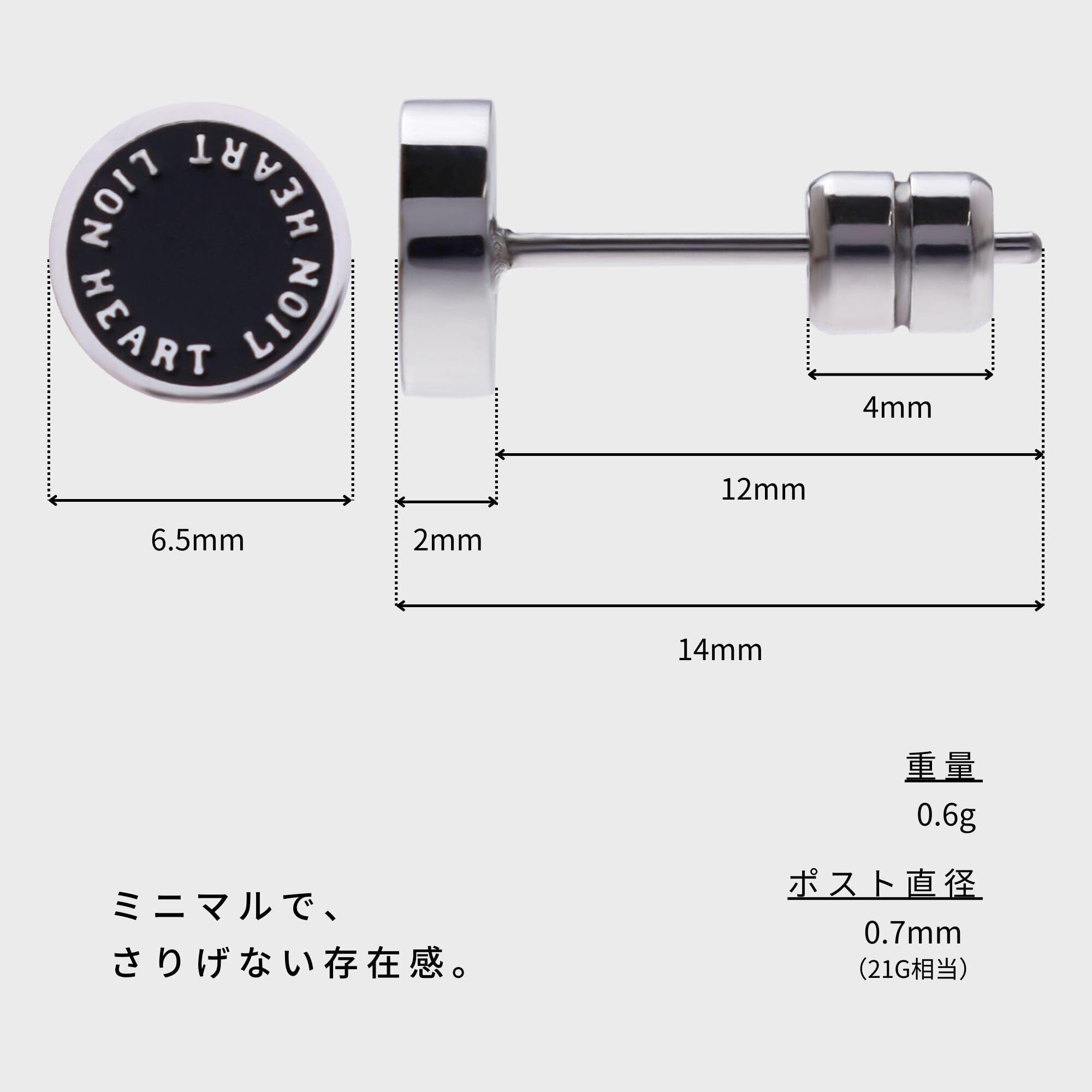 LION HEART ピアス LH-1 サークルコインスタッズピアス サージカルステンレス (金属アレルギー対応) メンズ (ポーチ付き)