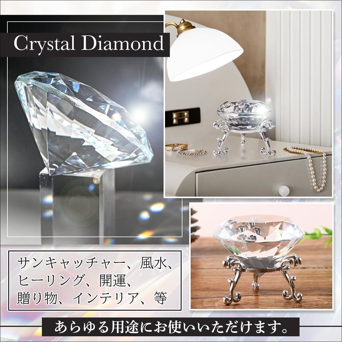 SALUDABLE クリスタル ダイヤモンド 文鎮 宝石 ペーパーウェイト クリア 置物 台座付き (80mm)