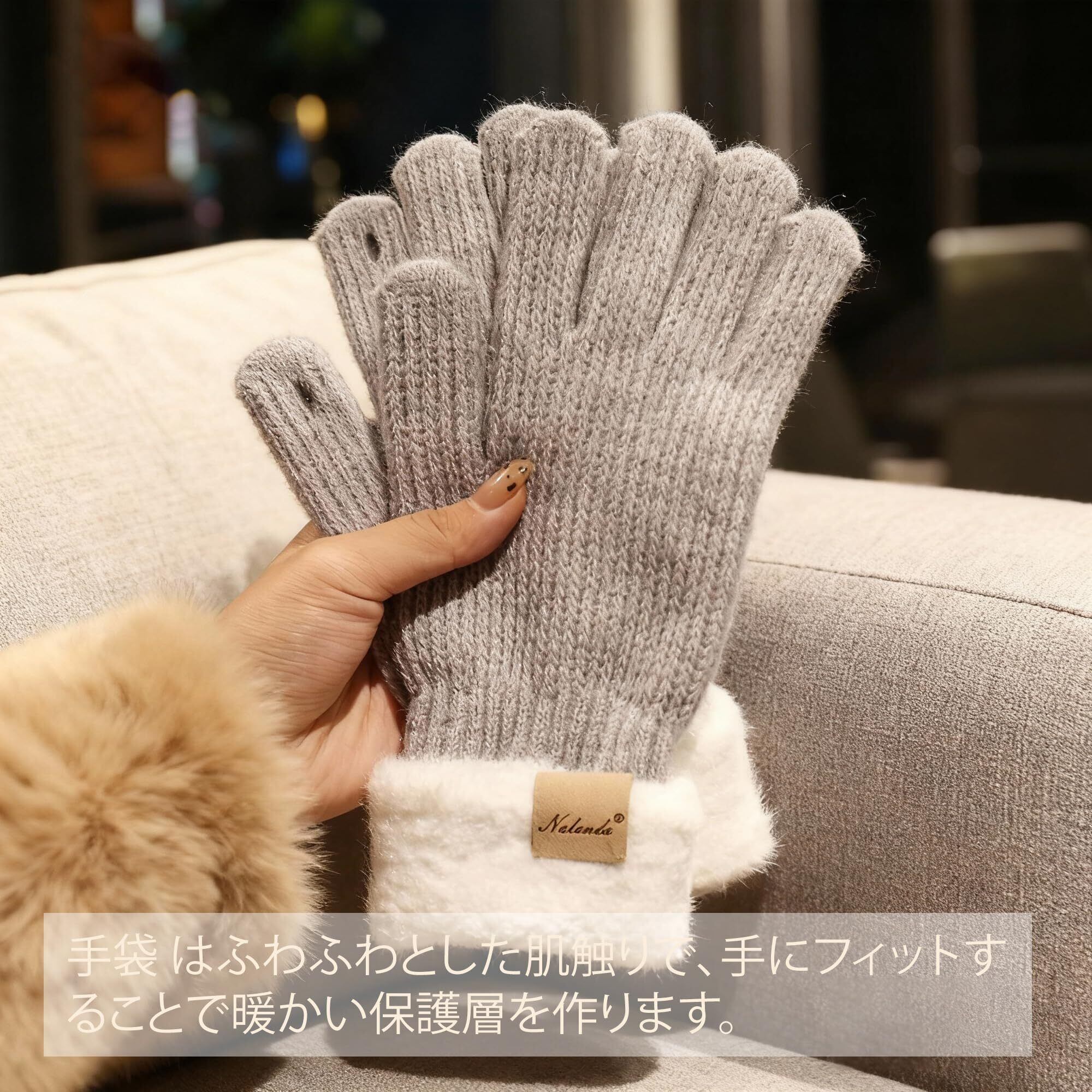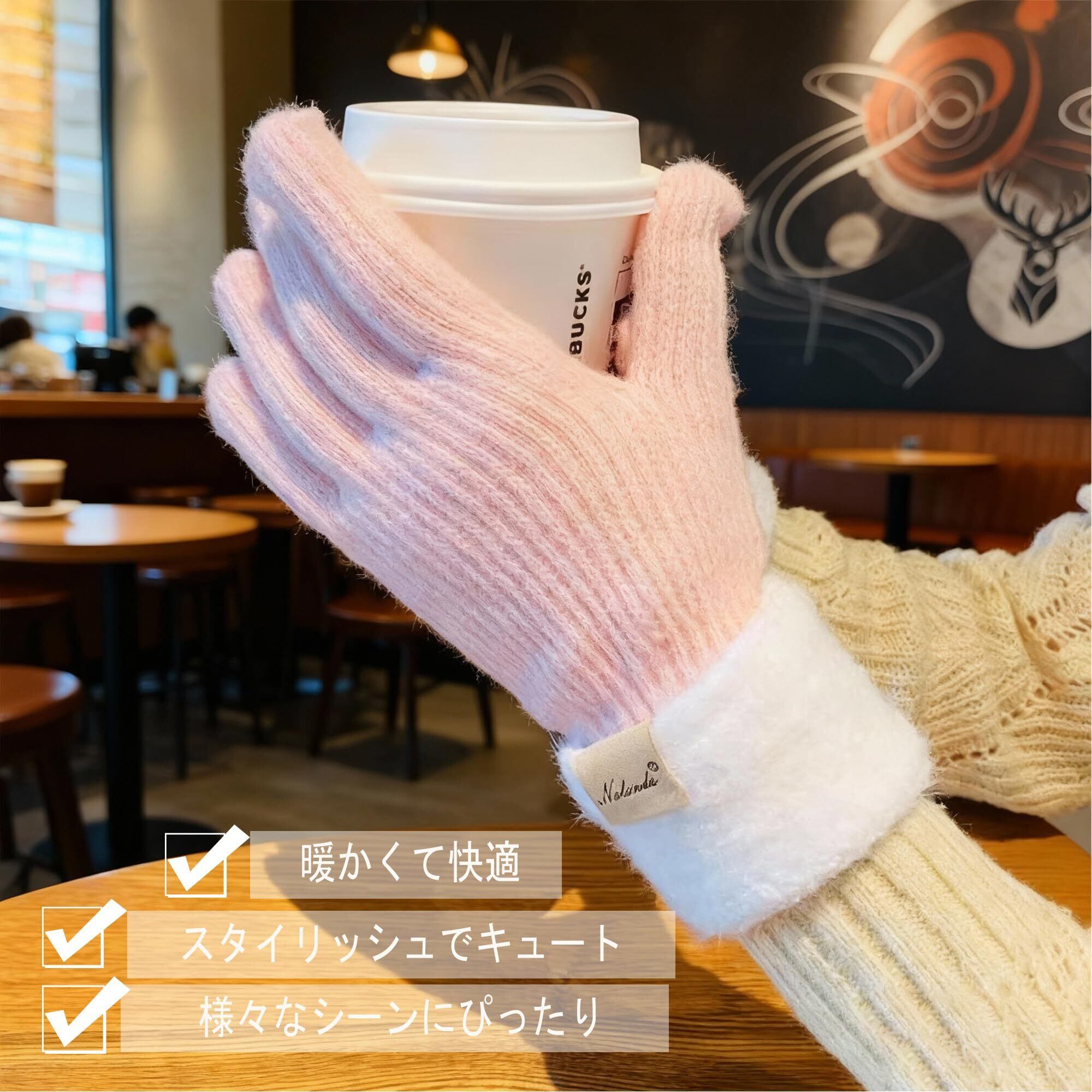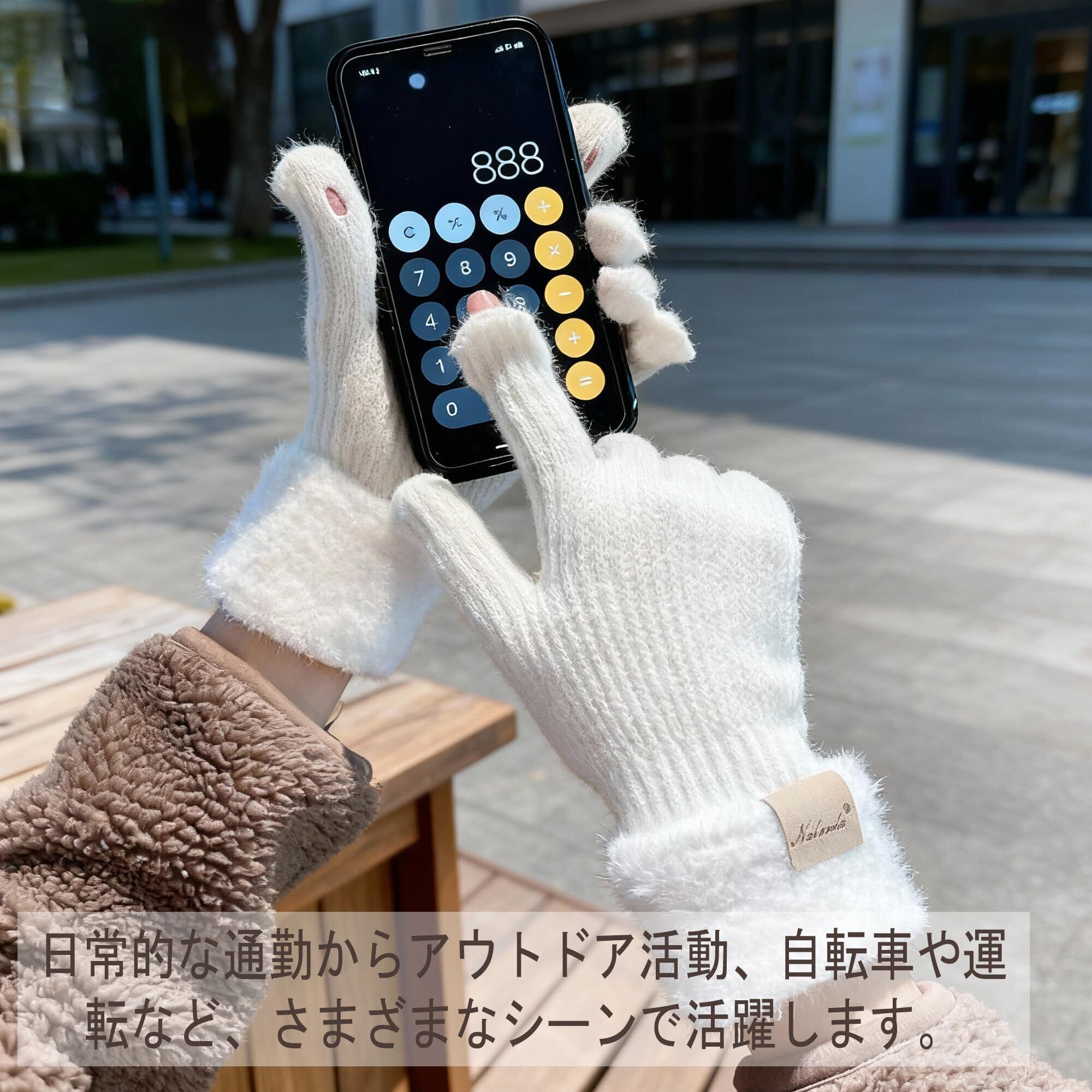 [BOJIDO] 手袋 レディース 防寒 冬 ニット手袋 スマホ対応 タッチパネル てぶくろ おしゃれ 暖かい ふわふわ 厚手 保温 高い伸縮性 自転車 運転 通勤 通学 フリーサイズ