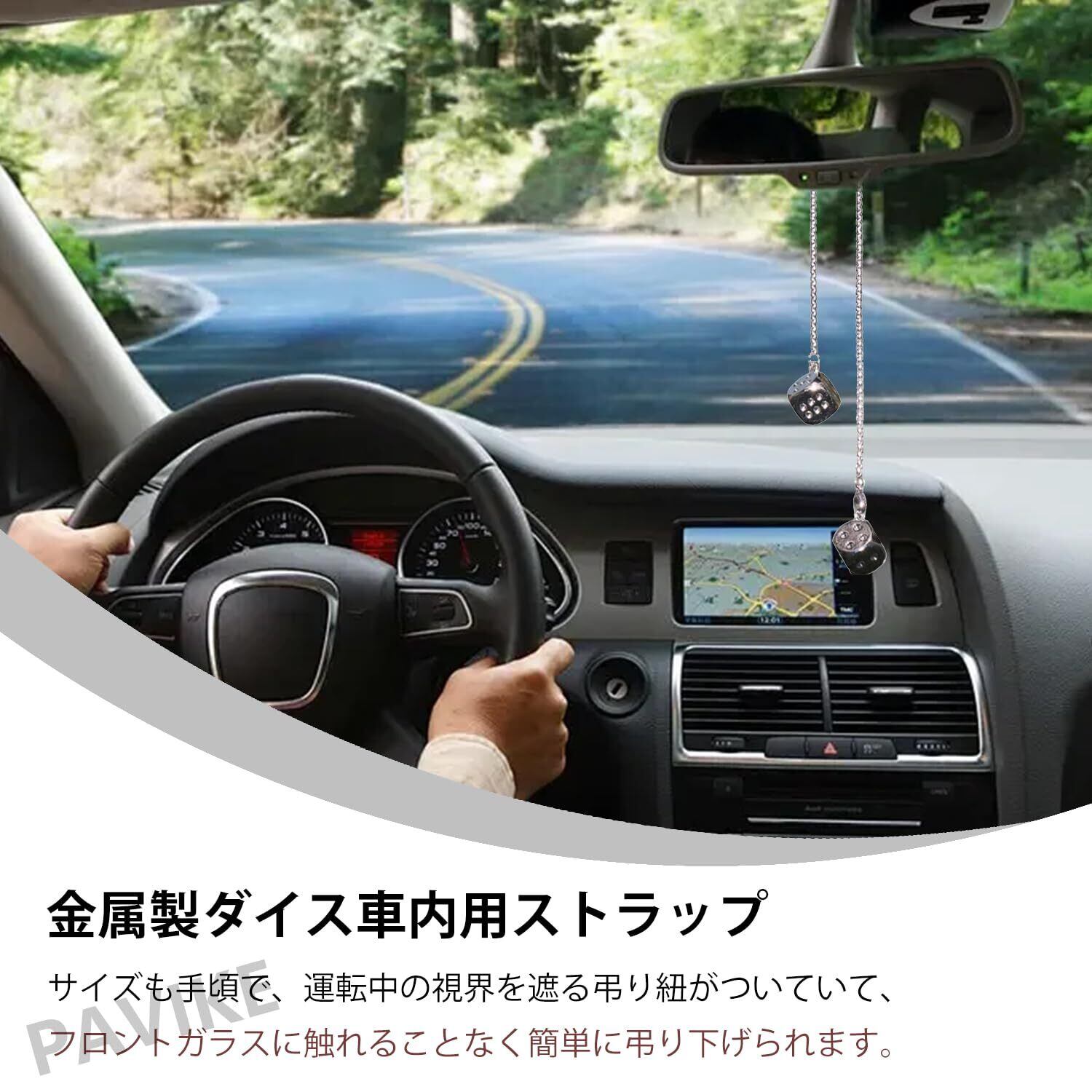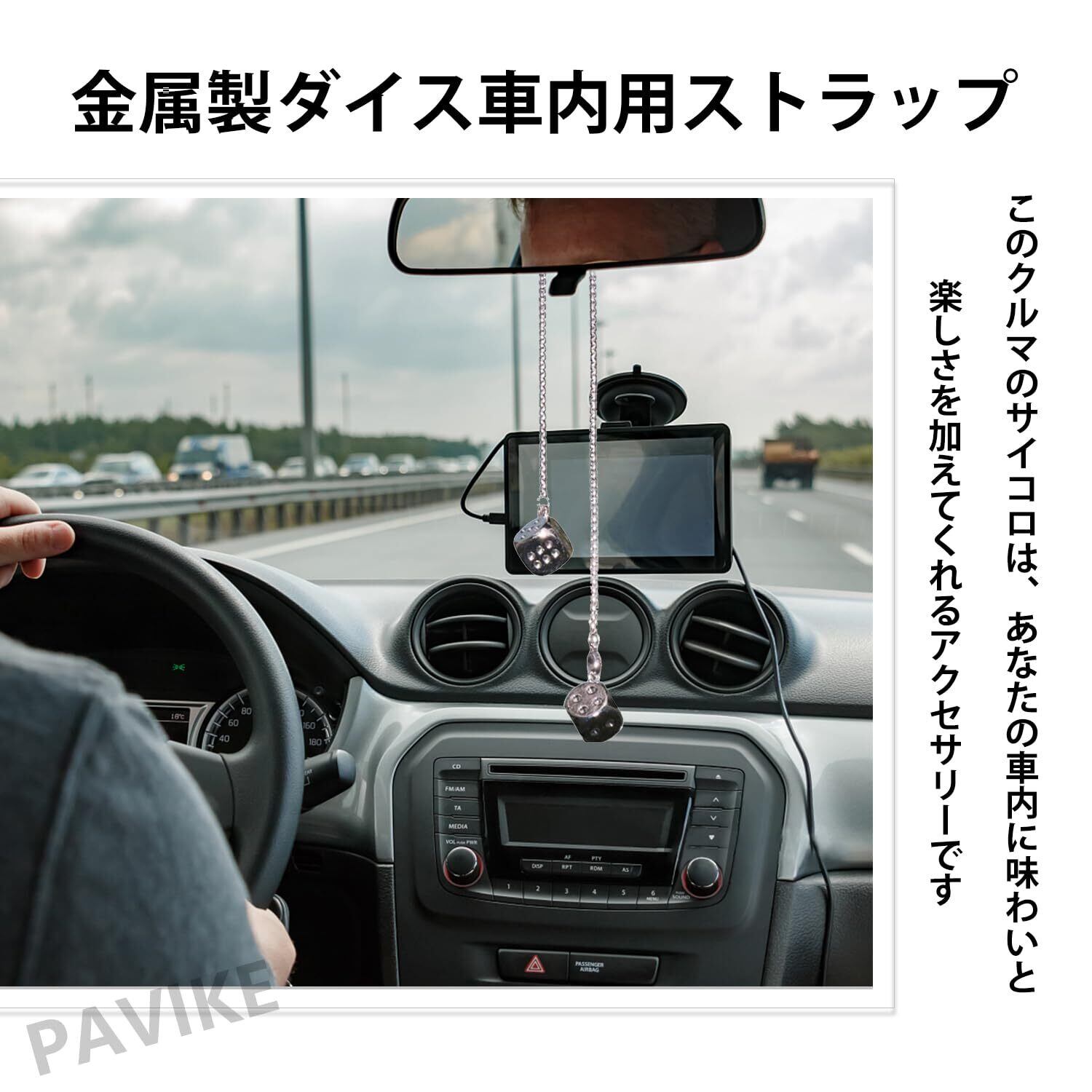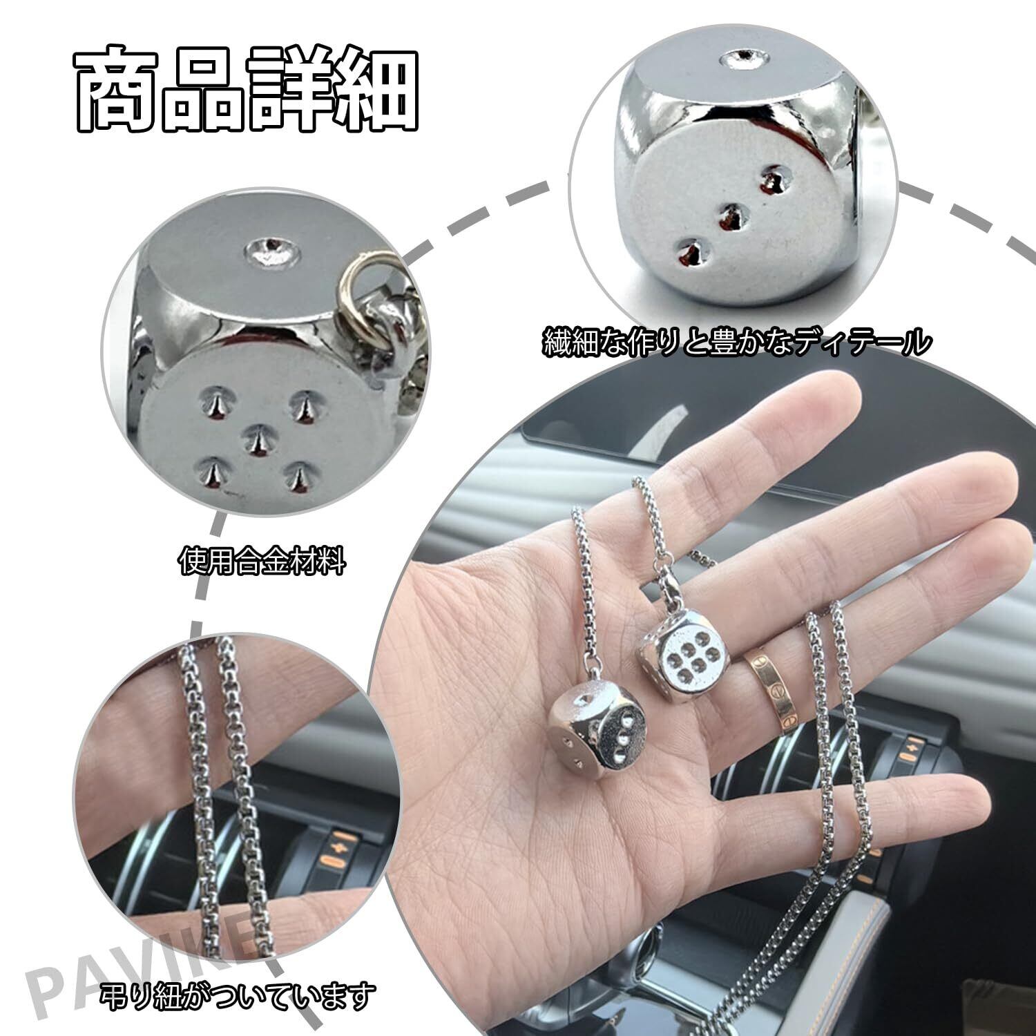 PAVIKE 車 ミラー 飾り サイコロ飾り ぶら下げ 合金サイコロ 車飾り クールなスタイル バックミラーサスペンション装飾 視覚を軽減する ギフトペンダント 車用デコレーション(シルバー)