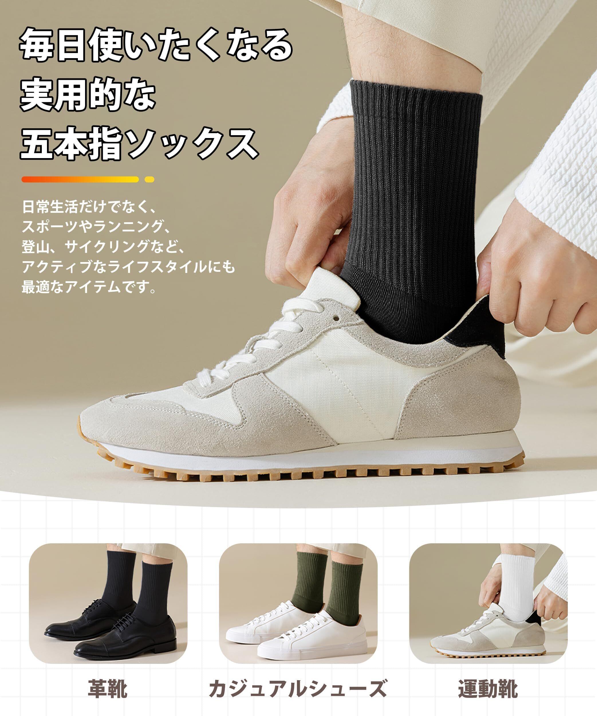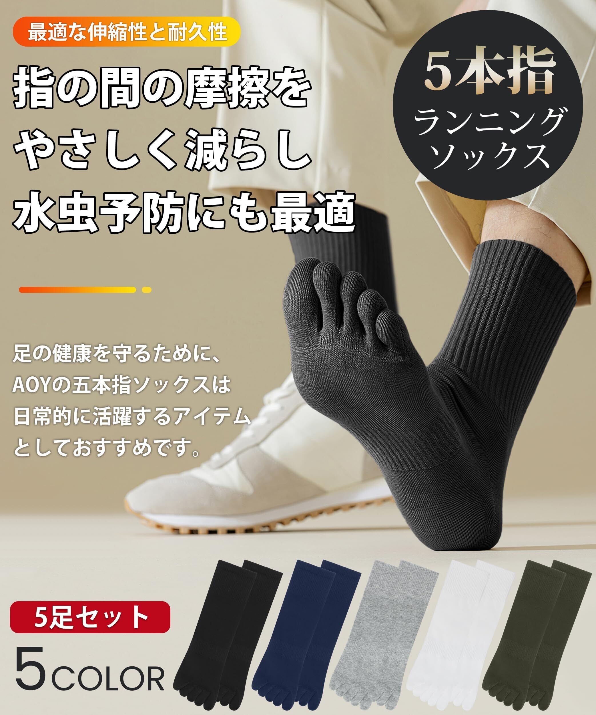 [AOY] 5本指ソックス メンズ 綿 五本指 五本指靴下 ランニング ソックス 5本指 ビジネスソックス 丈夫 滑り止め付き 吸汗速乾 大きい くつした 靴下メンズ 25~28cm 5足セット
