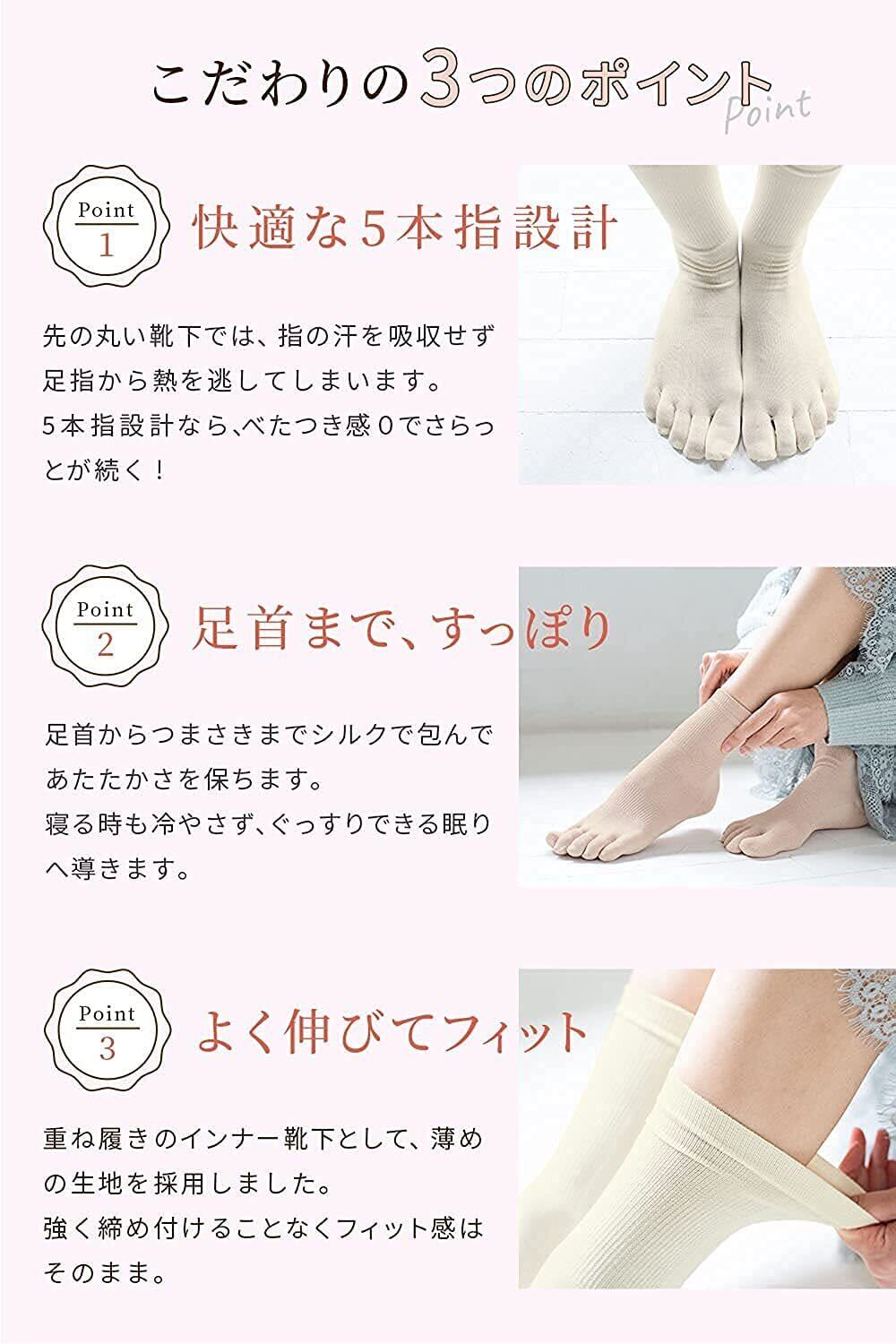 [COCOSILK] シルク 靴下 5本指 レディース【3足組】五本指ソックス レディース シルク靴下 5本指ソックス レディースくつした シルクソックス 5本指靴下 インナーソックス 重ね履き靴下 冷え取り靴下 シルク
