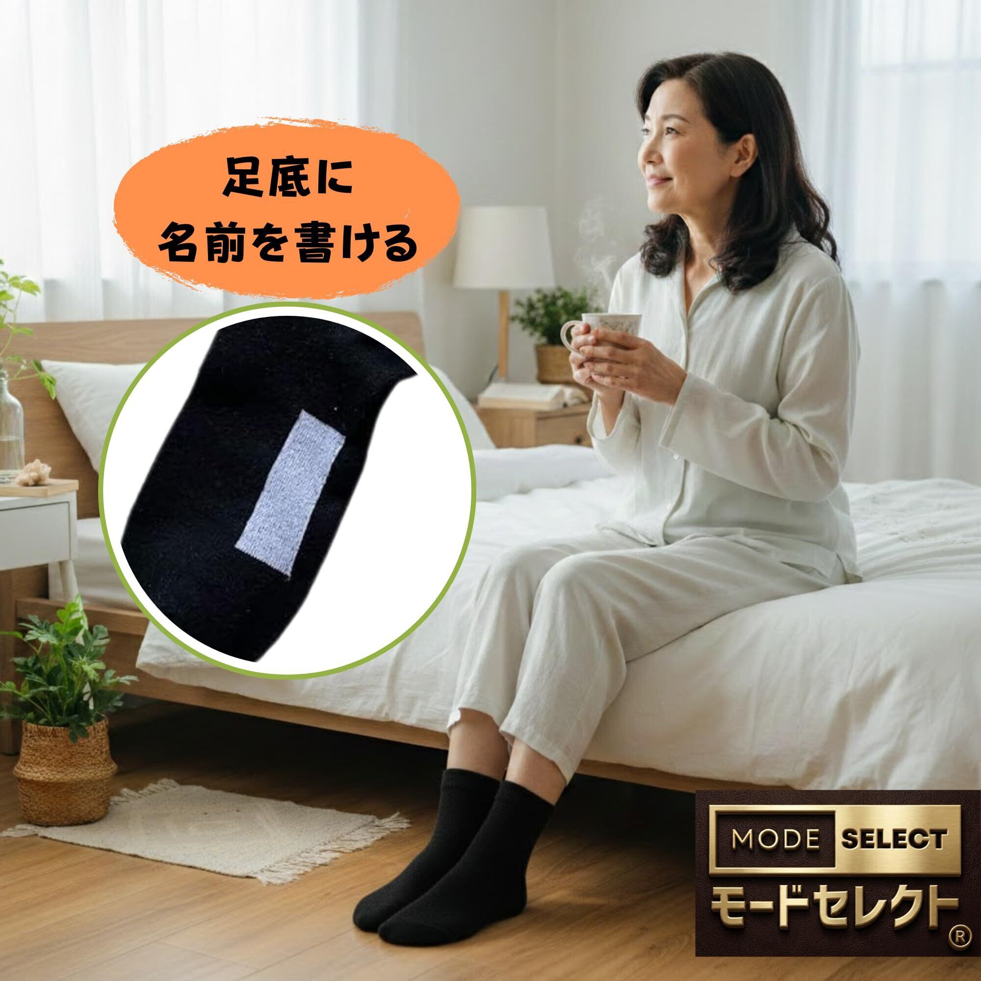 足底に名前を書けるデザイン、介護用のソックスです。