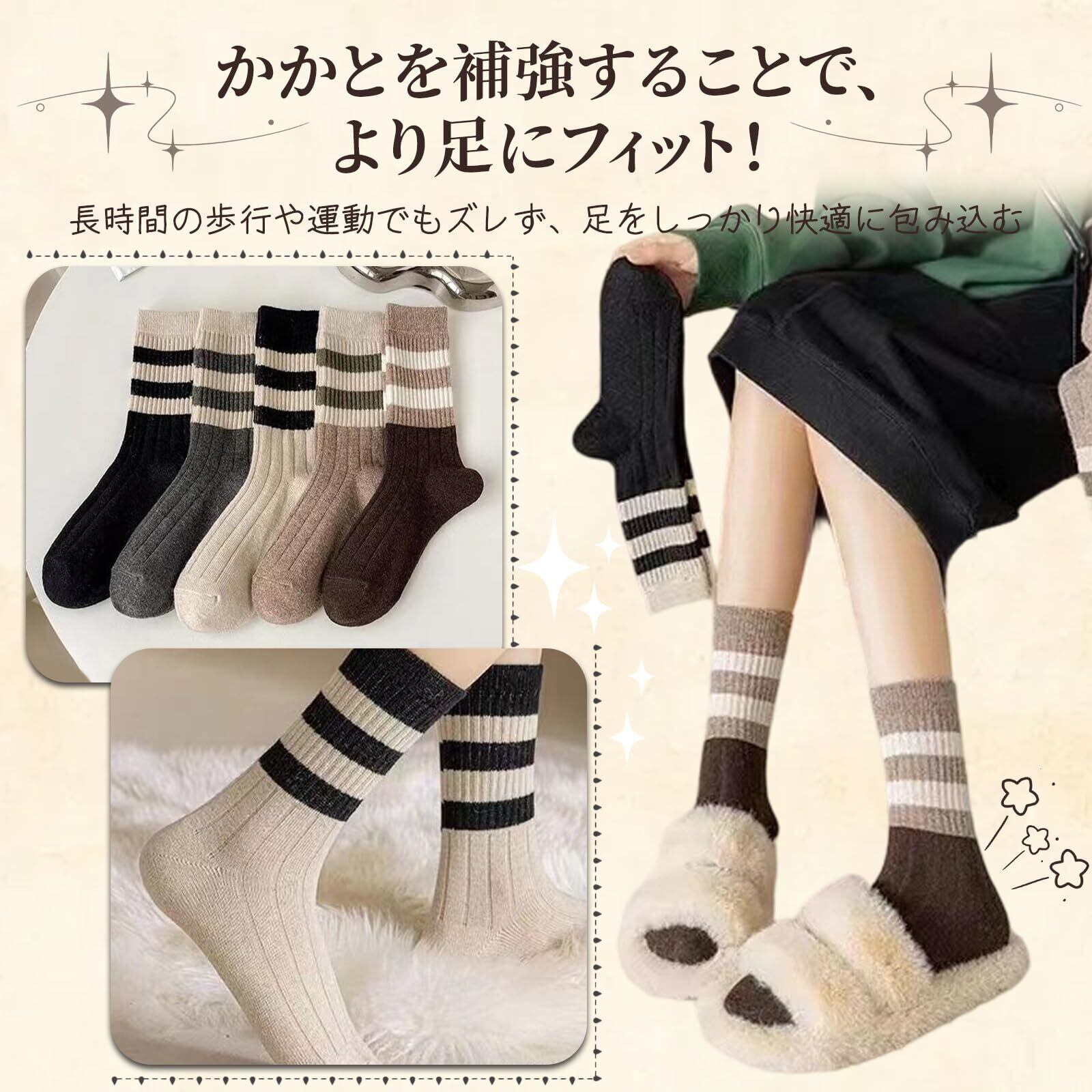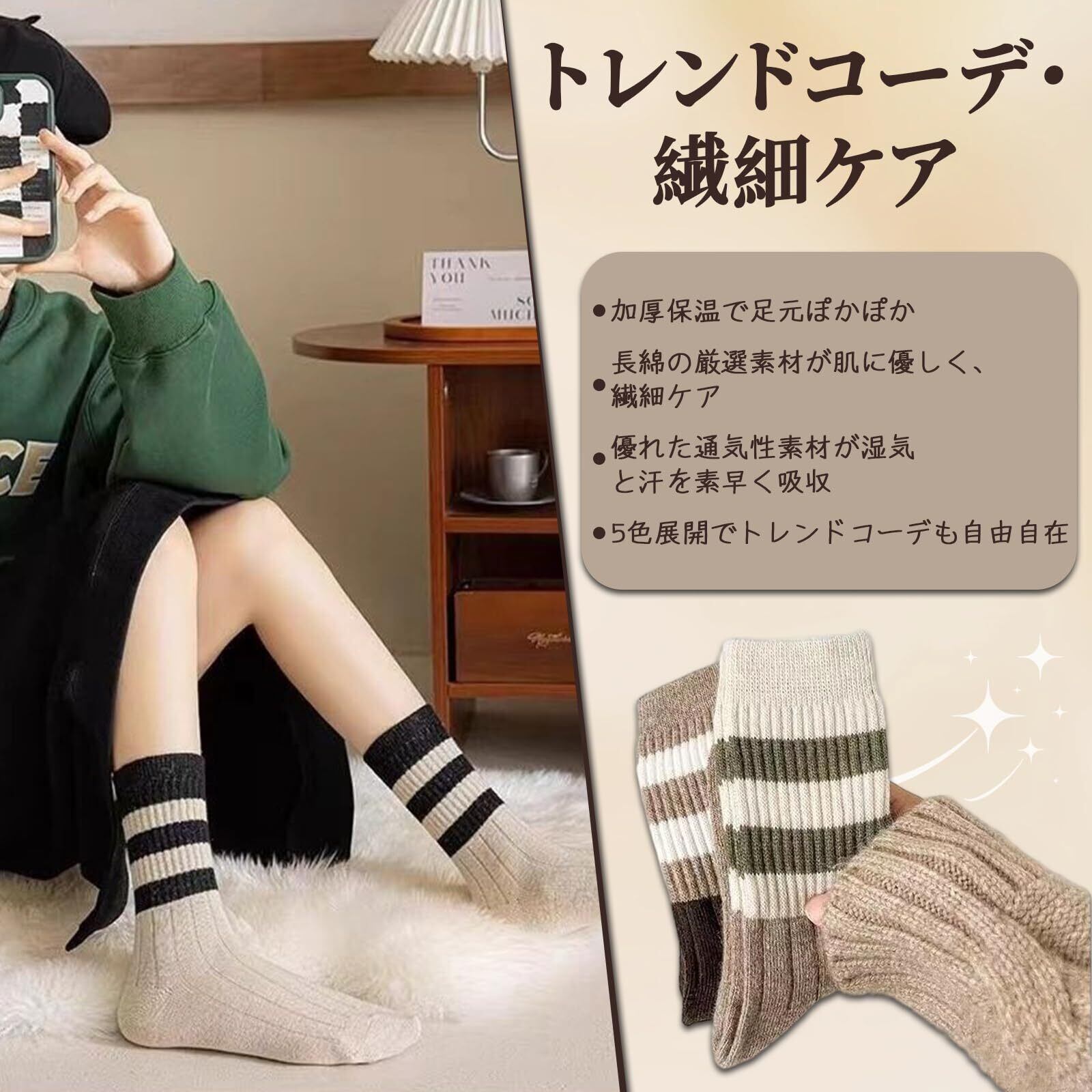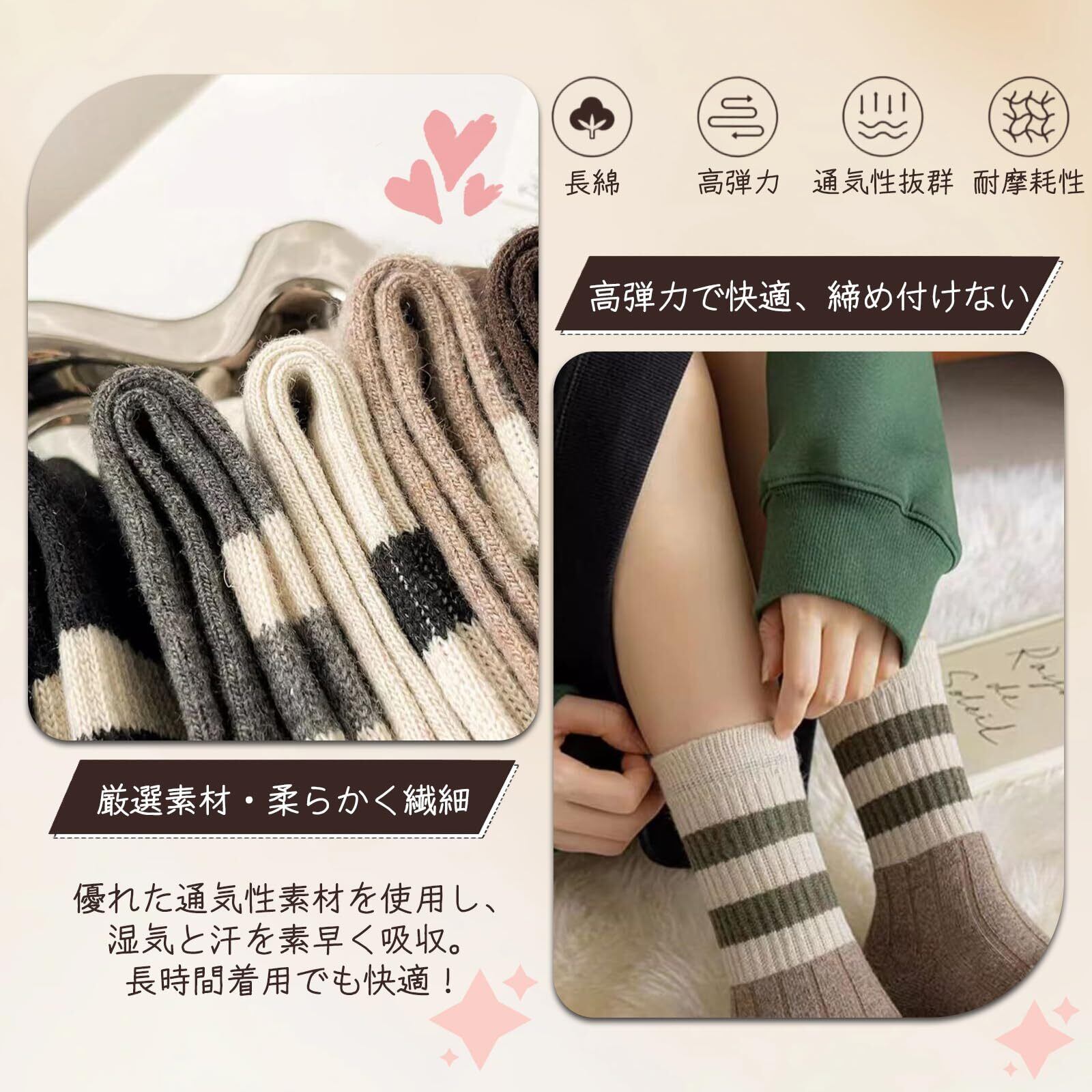 【快適素材、肌に優しい着用感】 綿80%のやわらかくて通気性のよい素材で、肌に優しく快適な履き心地です。私たちは慎重に靴下の快適さと耐久性を確保するために、高品質の素材を選択します。適度な伸縮性で靴下の滑りを防ぎ、優れた吸湿性で足をサラサラに保ちます。