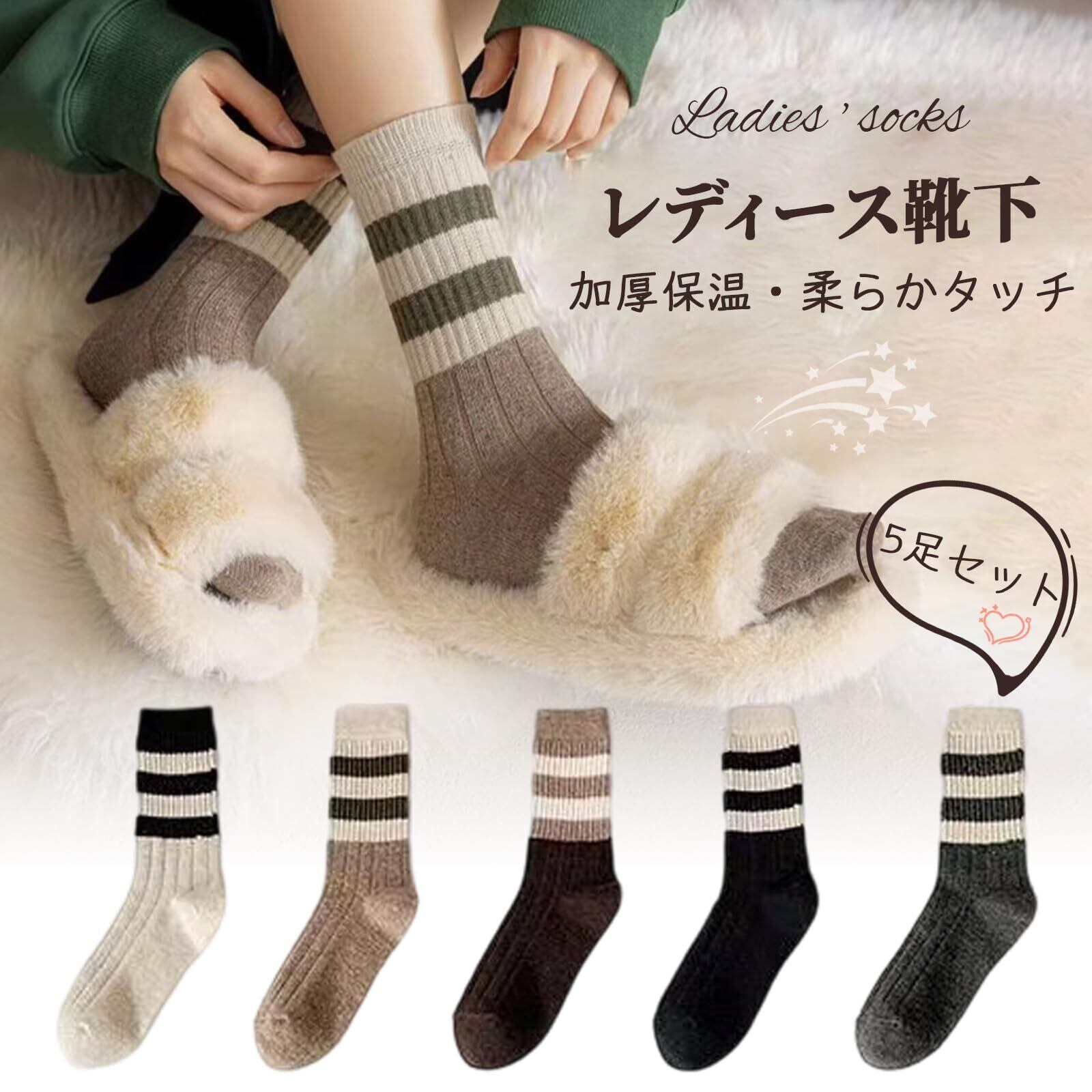 [VIXA] 靴下 レディース 春秋冬 暖かい 綿 5足セット カラフル ソックス レディース おしゃれ コットン 中厚手 室内 保温 靴下 女性 防寒 カジュアル 蒸れない スポーツ くつ下 通勤 通学