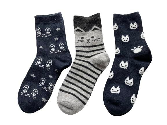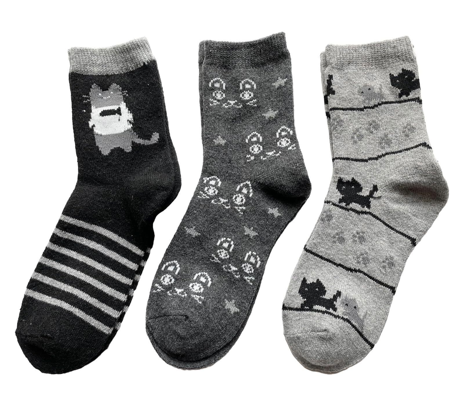 ソックス レディース あったか 3足 ねこ柄 靴下 レディース 厚手 冬 パイルソックス 毛混 防寒 靴下 3足セット(柄お任せ) G25