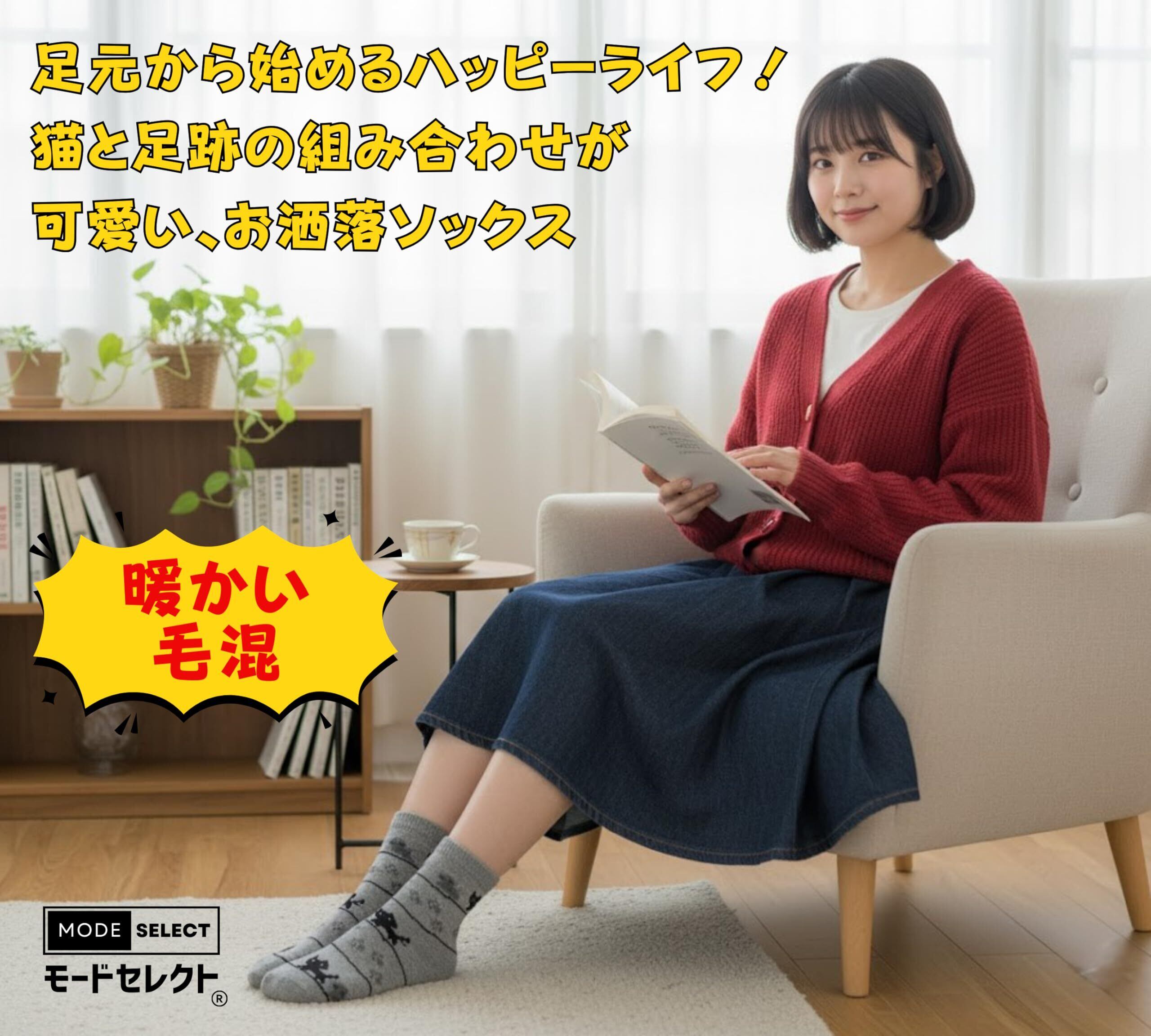 可愛いモノトーン猫柄、足元のおしゃれアイテム!