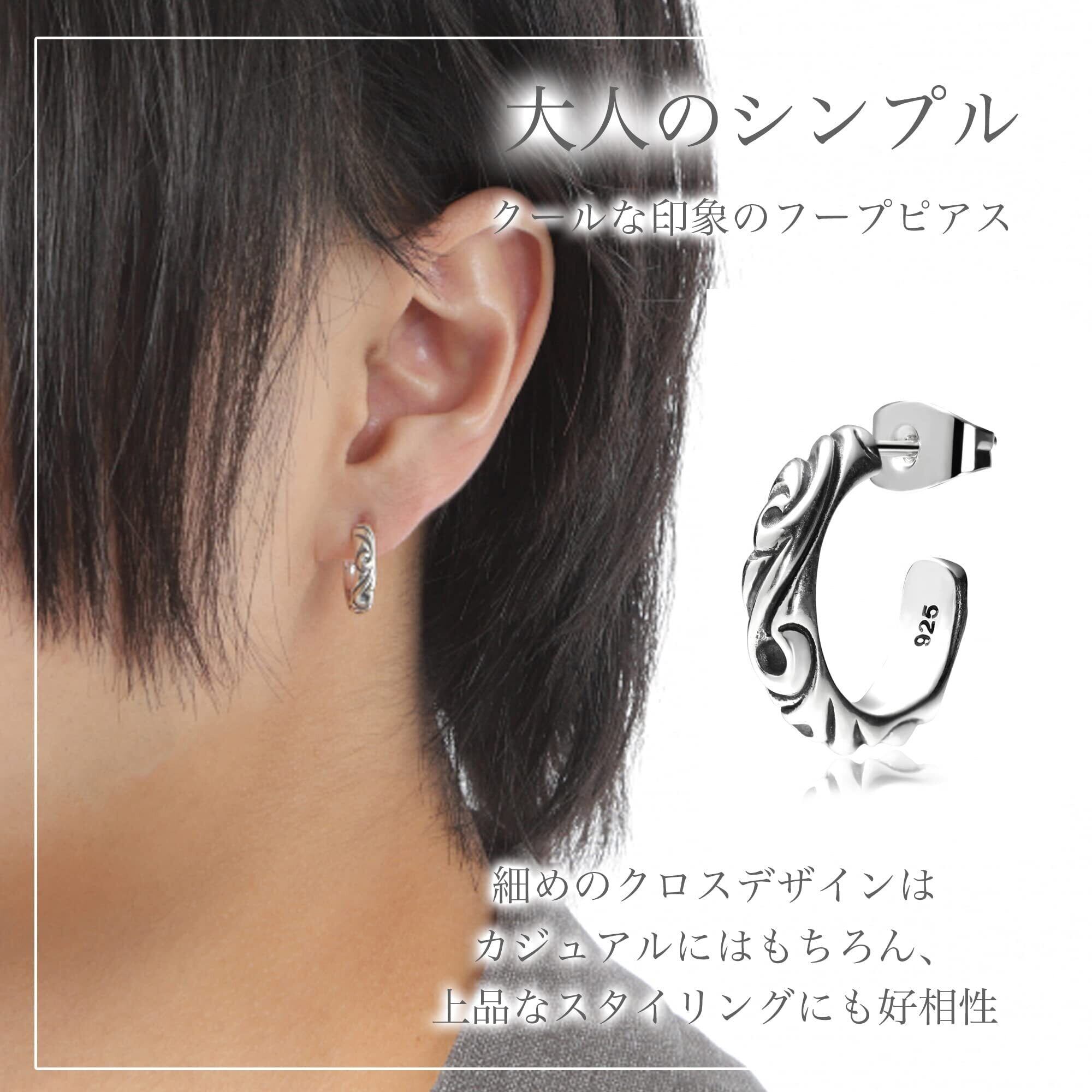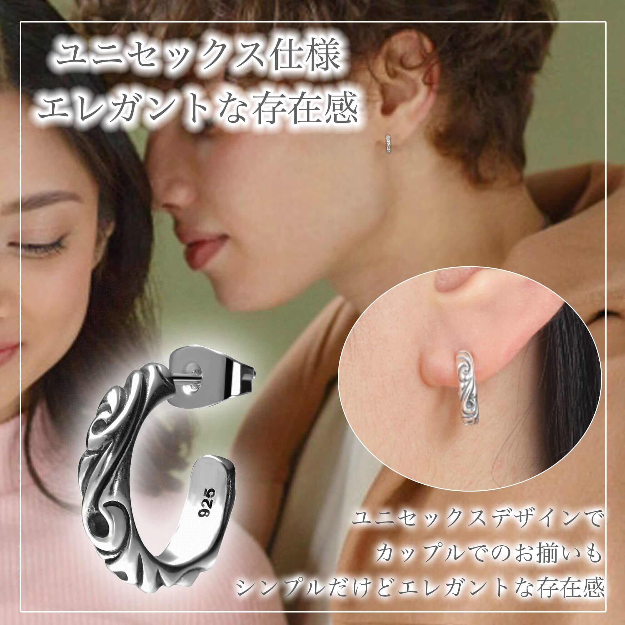 Aneige ピアス メンズ レディース フープ シルバー925 金属アレルギー対応 両耳セット スタッド式 アクセサリー ギフト対応