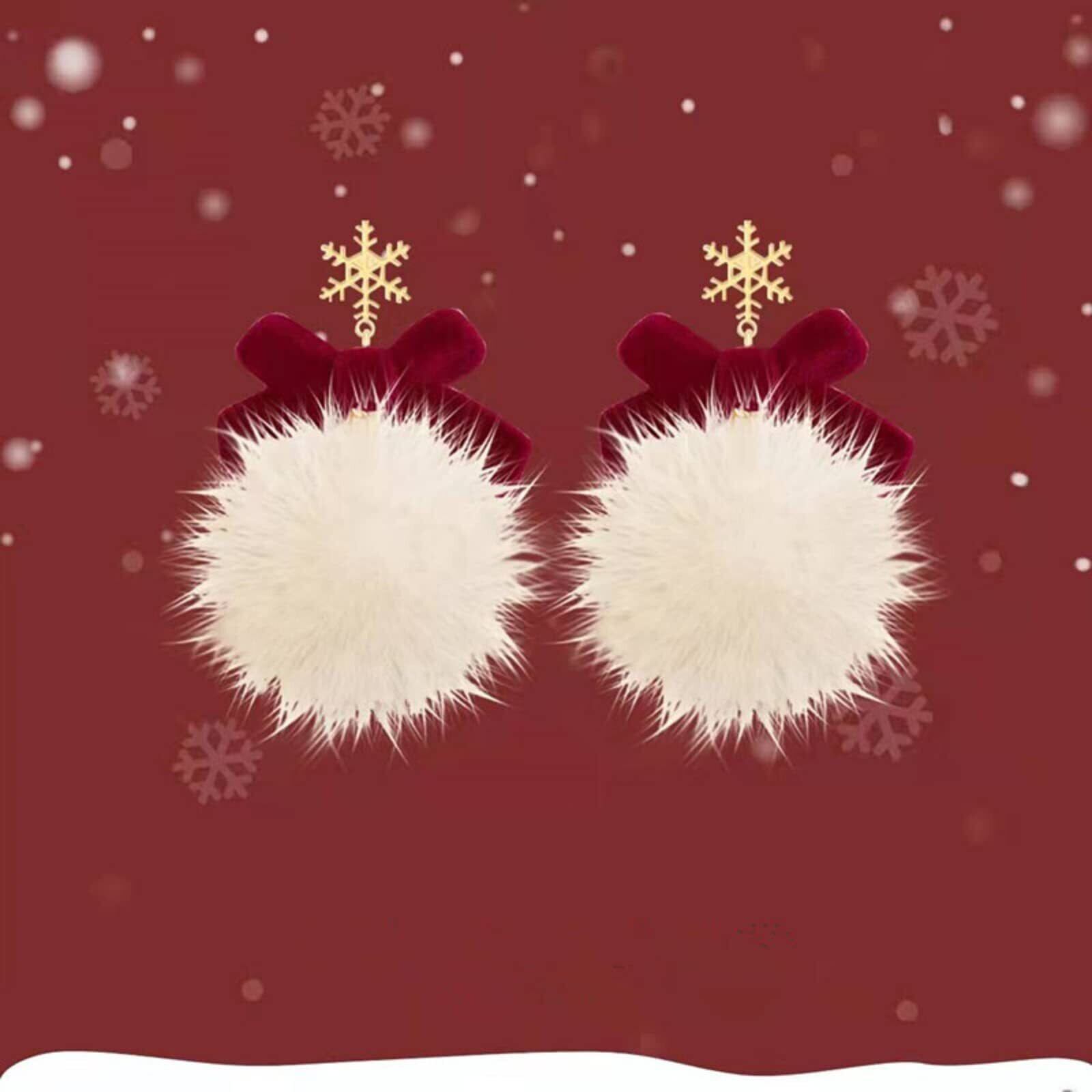 ❄️クリスマス、結婚式、パーティー、宴会など、ほとんどの機会に適しています。ガールフレンド、妻、友人へのギフトとして贈ることができます。ホワイト ポンポン イヤリングは、スノーフレークとホワイト ポン ボールのデザインを使用しており、秋冬のマッチングに適しており、服装に彩りを加えます。