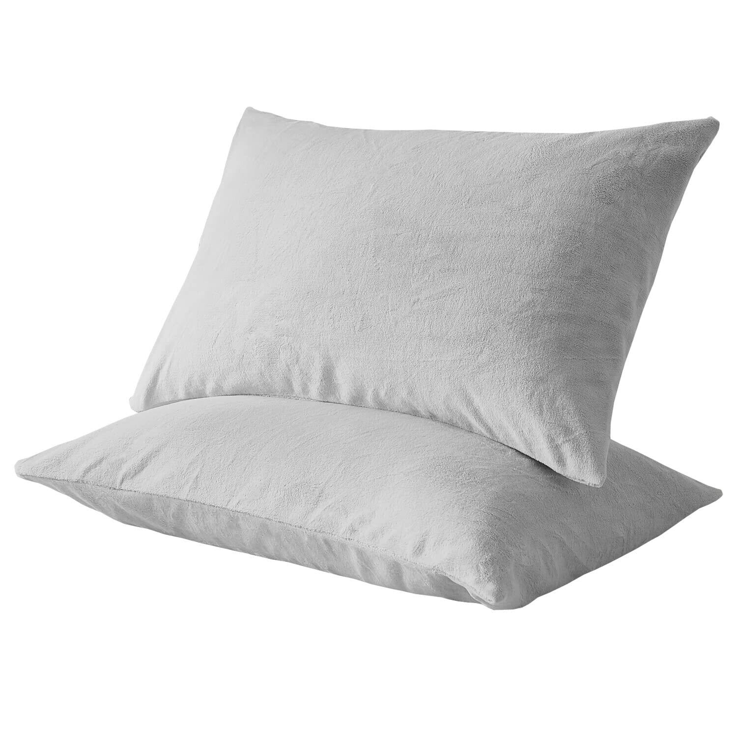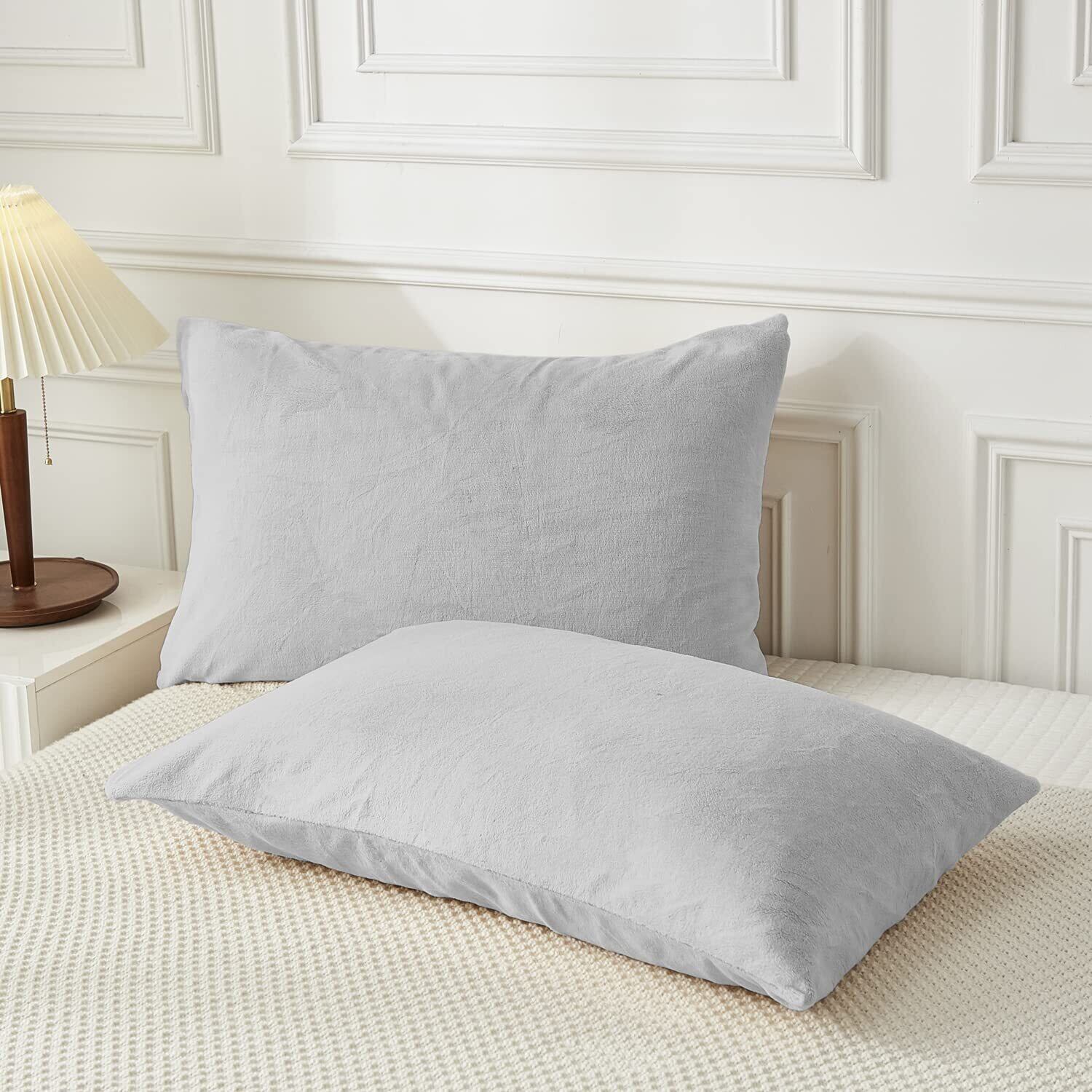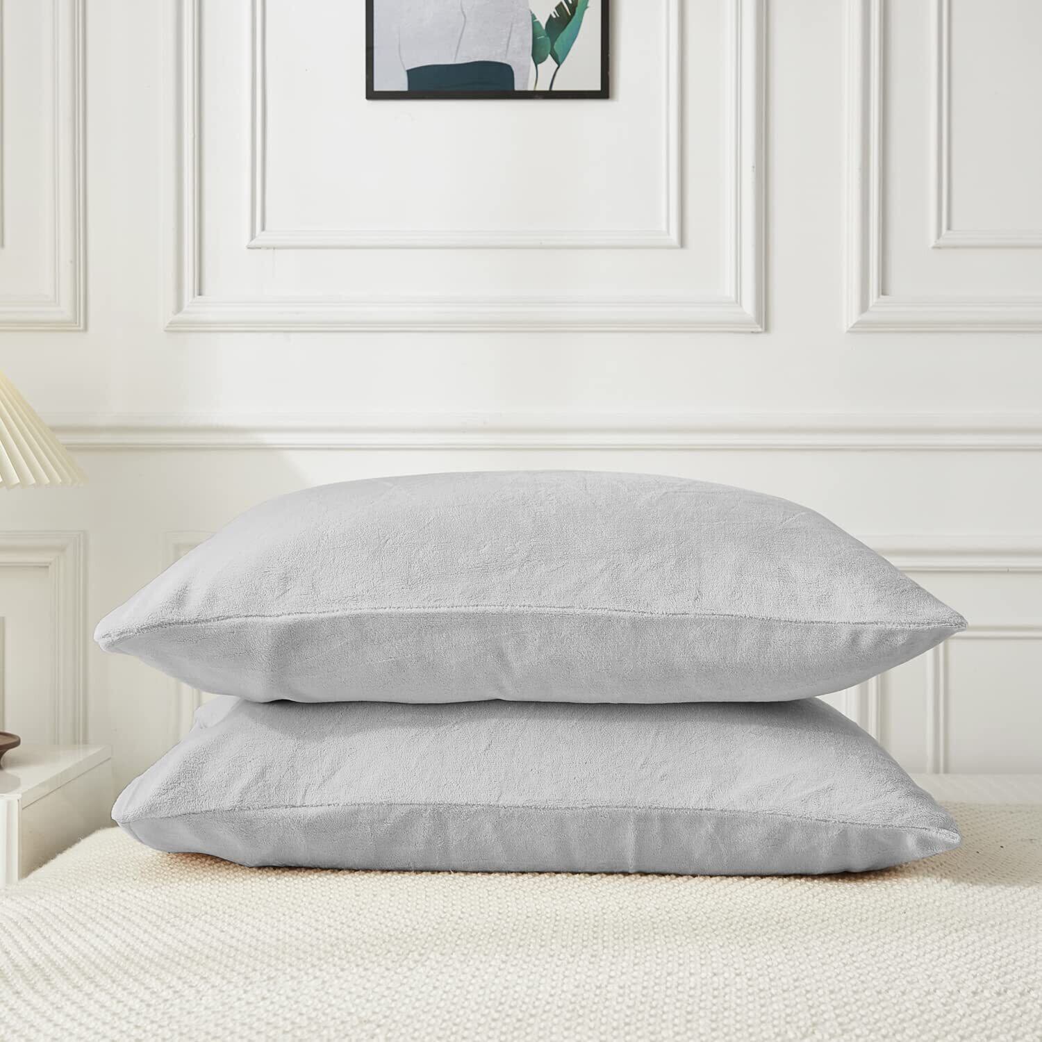 枕カバー 秋冬用 二枚セット マイクロファイバー まくらカバー フランネル パイル地 ピローケース ふわふわ 柔らかく肌触り 暖かい あったか 洗える 静電気防止加工 封筒式 (ライトグレー, 43×63cm)