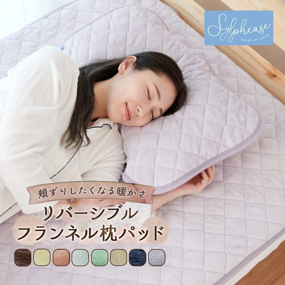 シルフィーズ 枕パッド 2枚組 43×63cm 枕カバー リバーシブル 綿100% タオル地 フランネル オールシーズン あったか 洗える ウォッシャブル ゴム付き ブラック