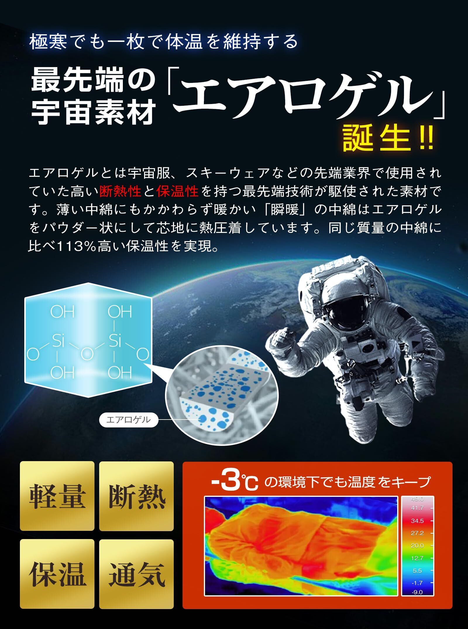 【匠の技×4大最先端テクノロジー素材で叶える、贅沢で上質な眠り】宇宙服素材に採用されている次世代断熱材「エアロゲル」×ノーベル賞受賞の奇跡の抗菌発熱素材「グラフェン」×温活おすすめの天然ショウガ成分配合の吸湿発熱新素材「暖姜繊維」×環境に優しい革新的発熱抗菌素材「コーヒー炭素繊維」。この4つの最先端テクノロジーで、次世代のあったか敷きパッドが登場!科学のチカラで睡眠を神進化!!この一枚で、真冬の睡眠が驚くほど快適に。セットで暖房いらずで朝まであったかポカポカ。