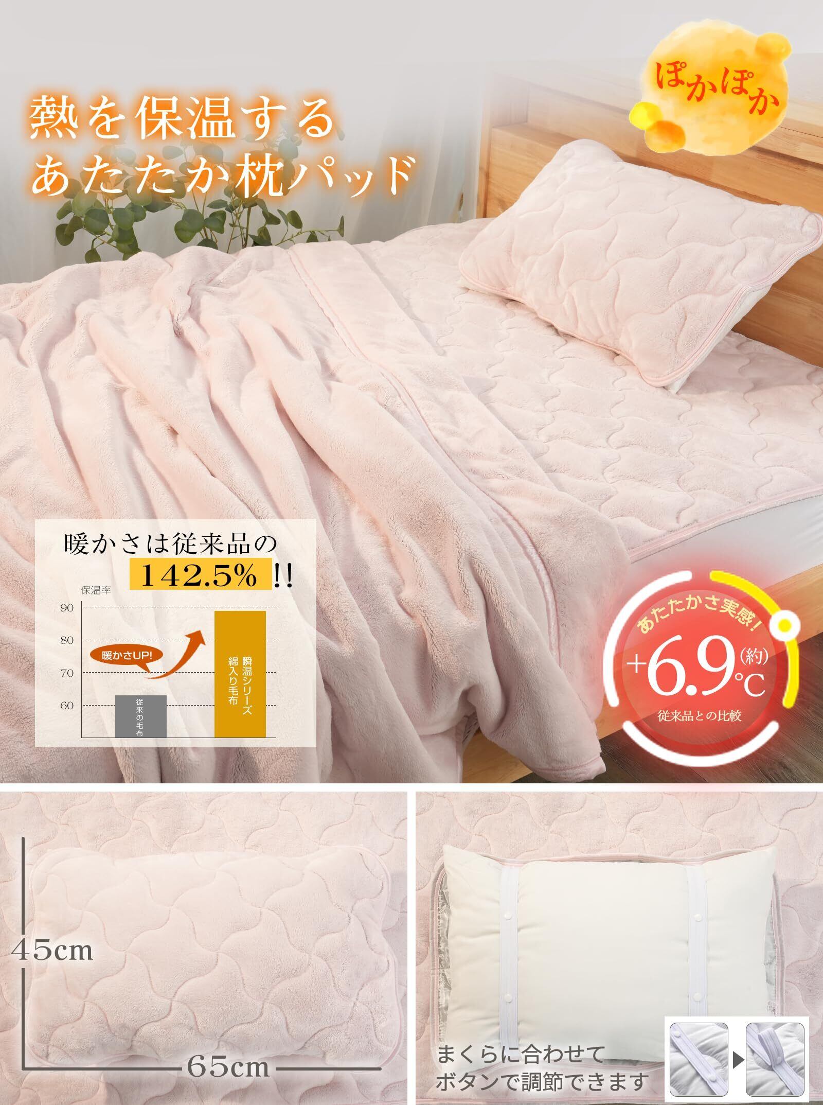 IMA HOME 【4大最先端テクノロジー×瞬温®暖感】枕パッド 冬 あったか 吸湿発熱 新8層構造高保温 5重抗菌防臭防ダニ 静電気防止 光触媒 CICA保湿 極柔タッチ ふわふわ 暖感 枕カバー まくらパッド 暖かい 冬用 洗える(45×65cm ピンク)