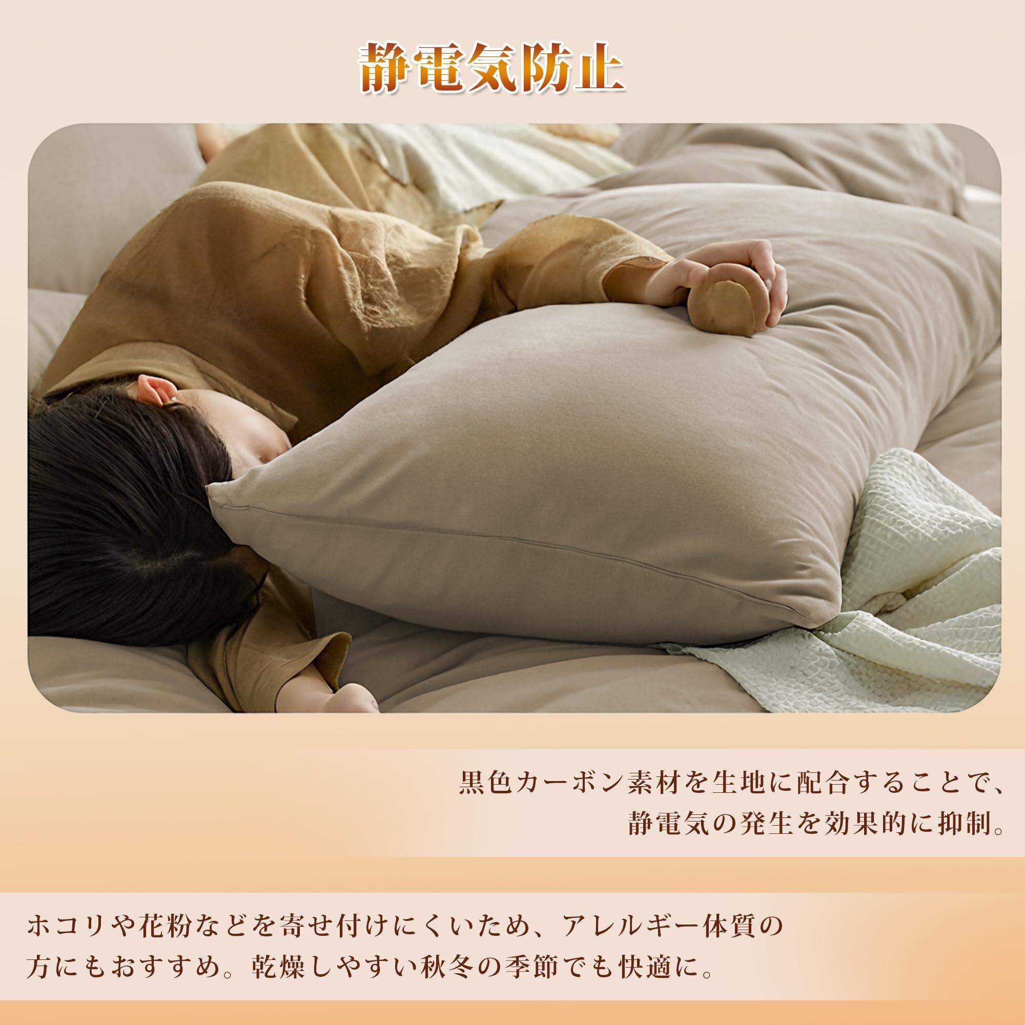 【静電気防止加工済み】カーボン糸を織り込み、パチパチする静電気を抑制。お肌や髪の毛へのダメージを軽減し、快適な睡眠をサポートできます。