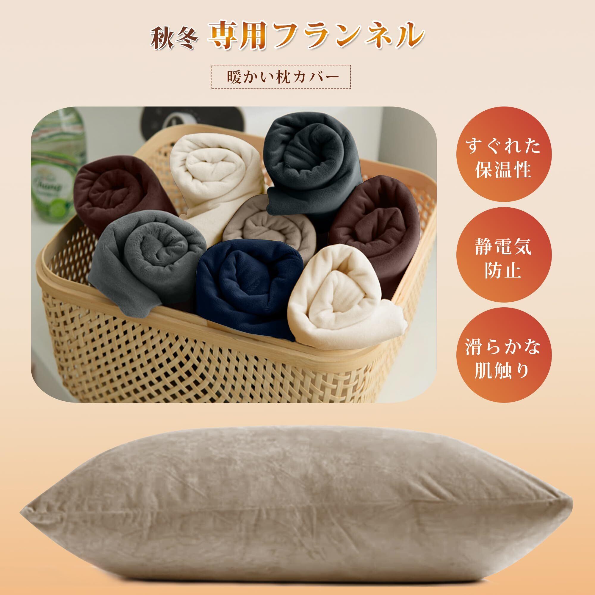 AYO 枕カバー 冬用 フランネル 43×63cm 吸湿発熱で暖かい マイクロファイバ 静電気防止 ふわふわ 毛布タッチ ふわふわ 封筒式 洗える 1枚 カーキ