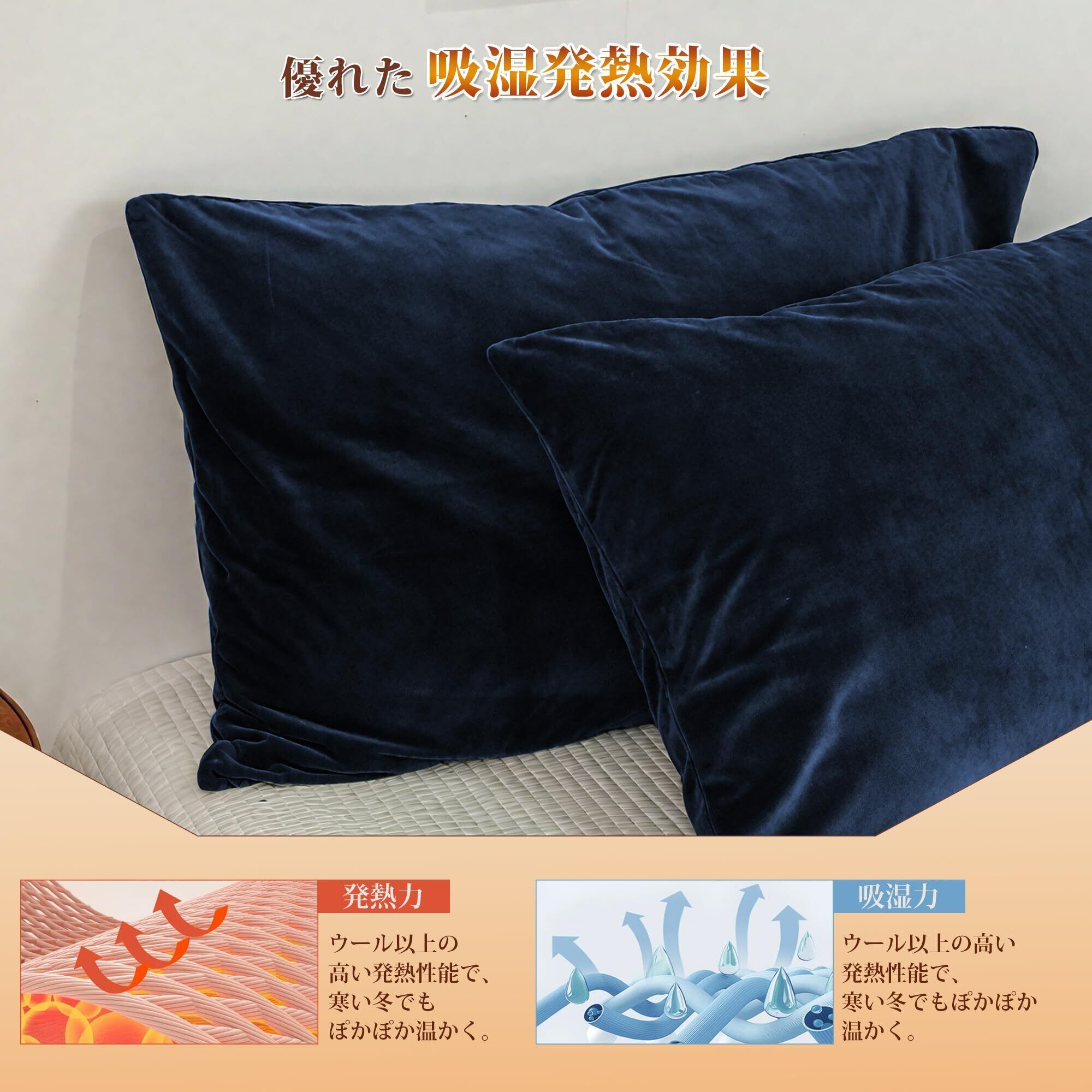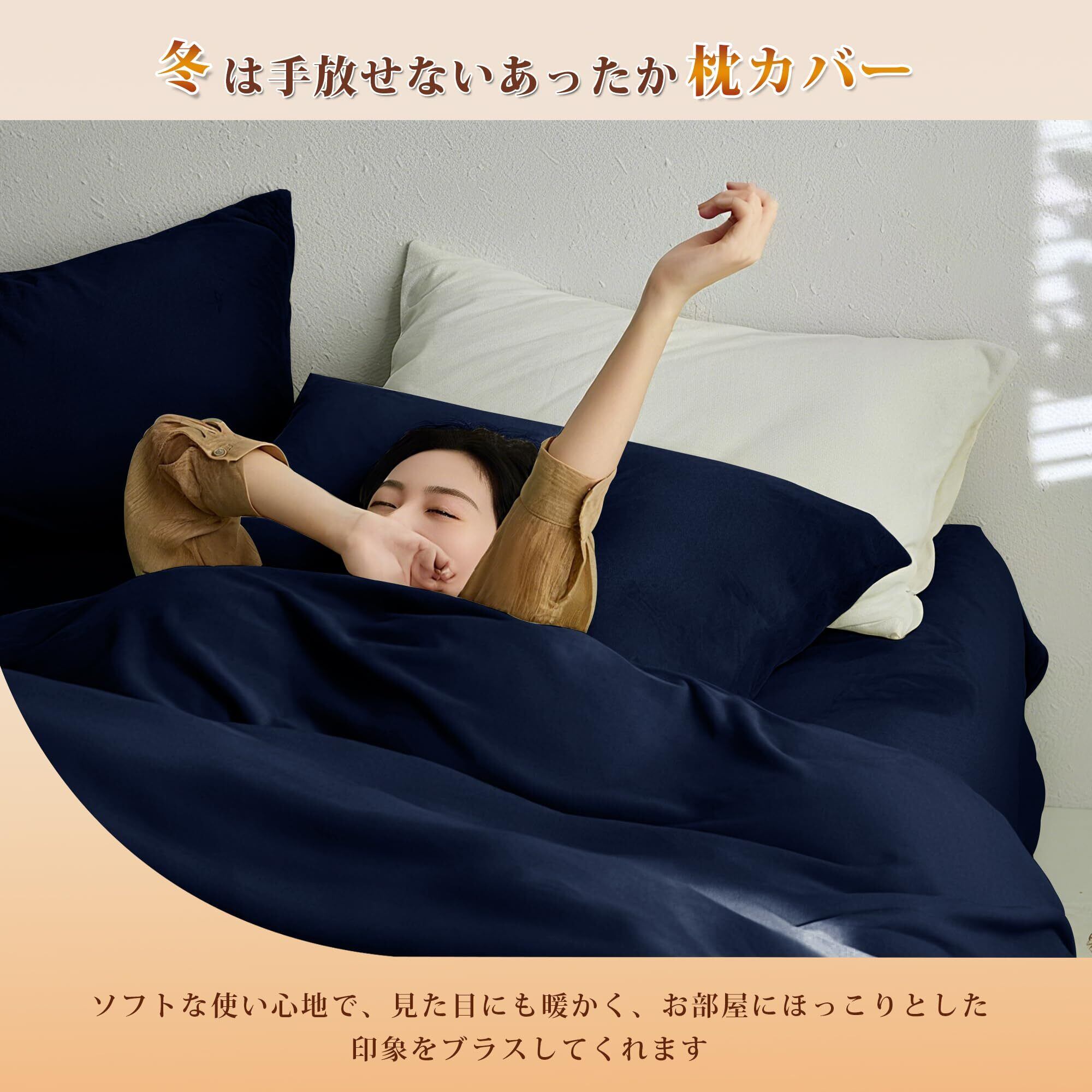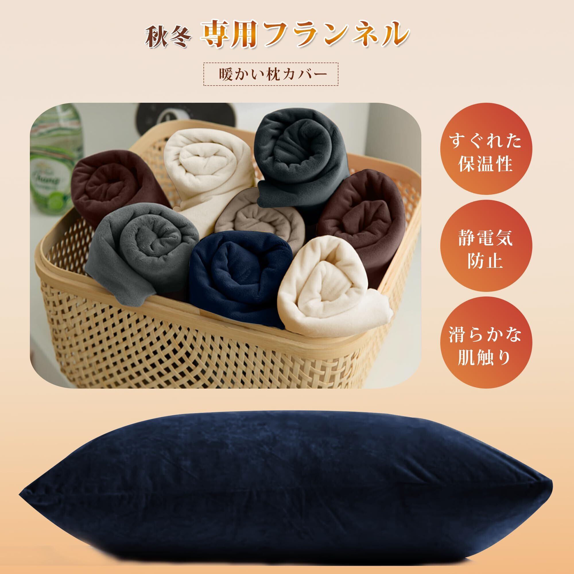 AYO 枕カバー 冬用 フランネル 43×63cm 吸湿発熱で暖かい マイクロファイバー 静電気防止 ふわふわ 毛布タッチ ふわふわ 封筒式 枕パッド 洗える 1枚 ネイビー