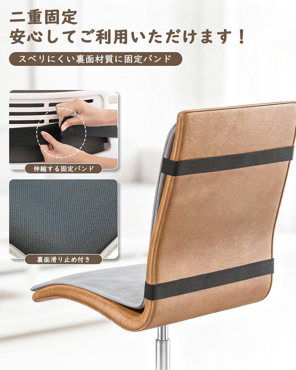 【滑らない! ずれない! 革命的な固定設計】オフィスチェア、ソファまで、「シリコン滑り止めパッド」と「強力固定ベルト」のW固定システムで、どんな場所でも“ピタッ”と決まり、温もりを持続。ズレやずり落ちの心配はありません。