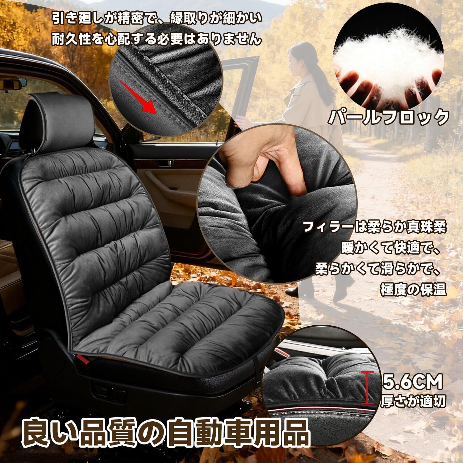 車 シートカバー 座席シートクッ 低反発 クッション 座布団車用ふわふわ ション カーシートクッション ブラック 汚れに強い シートくっしょん 車 車ざぶとん最新 座布団 シートカバー 1枚 汎用カー装飾 カー用品 冬物 自動車用
