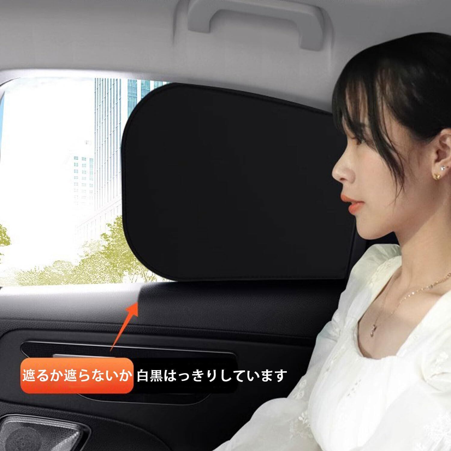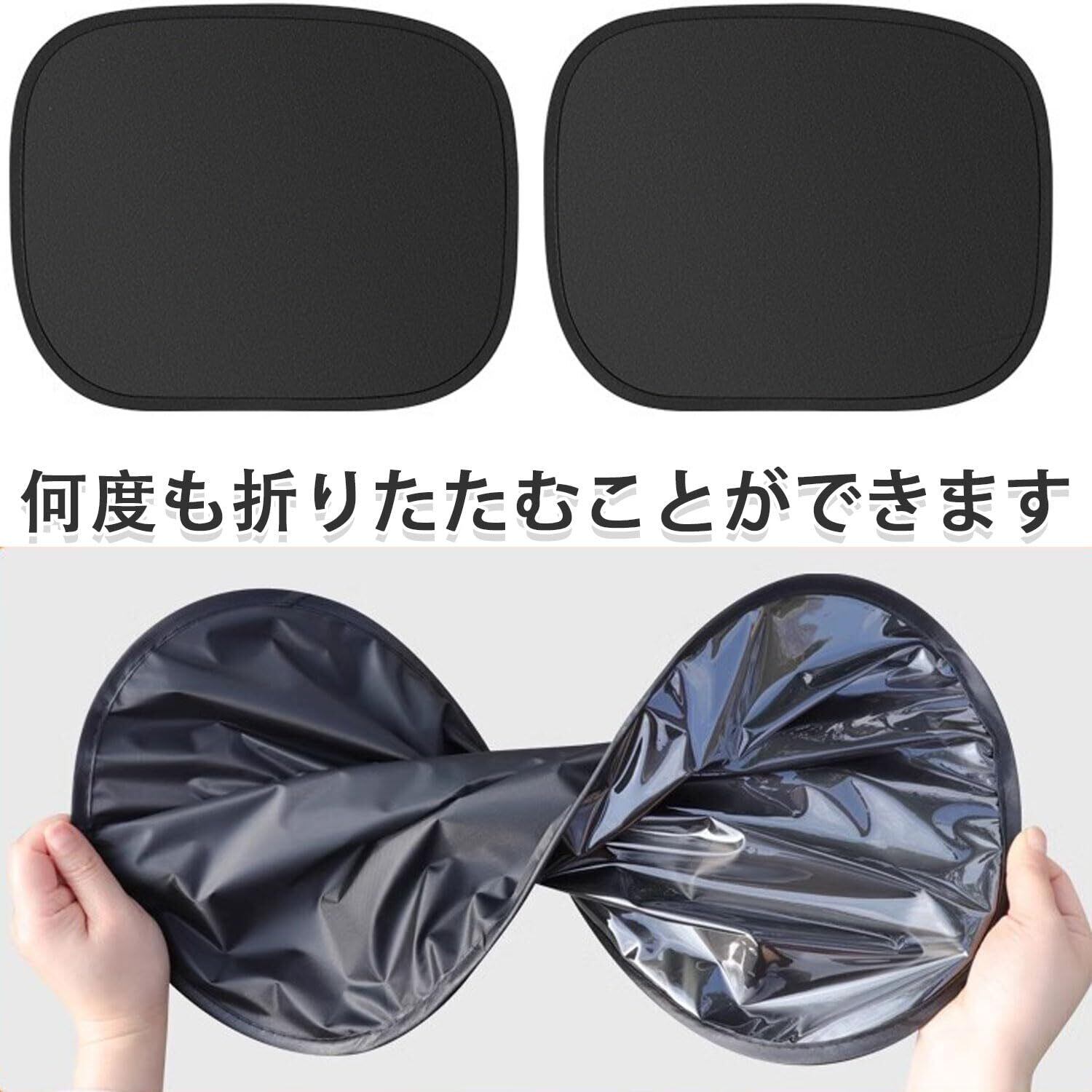 【パッケージ内容】サイズ35.5×44cmの2枚セットが後部座席のサイド窓にフィット。※走行時はフロントサンシェードを外すこと、冬季の湿度低下時は暖かい場所での使用を推奨。初回開封時の折り目シワは軽く伸ばすだけで解消できます。