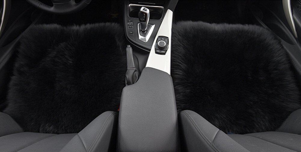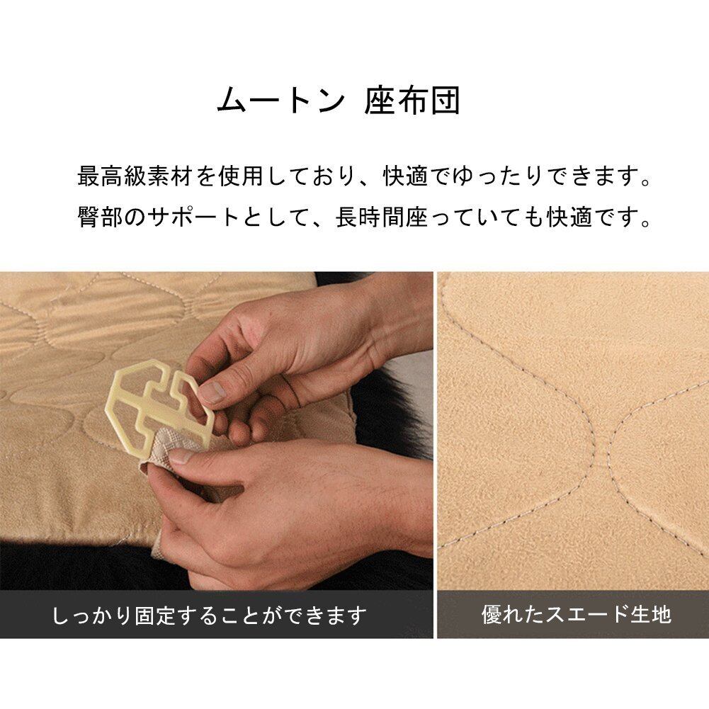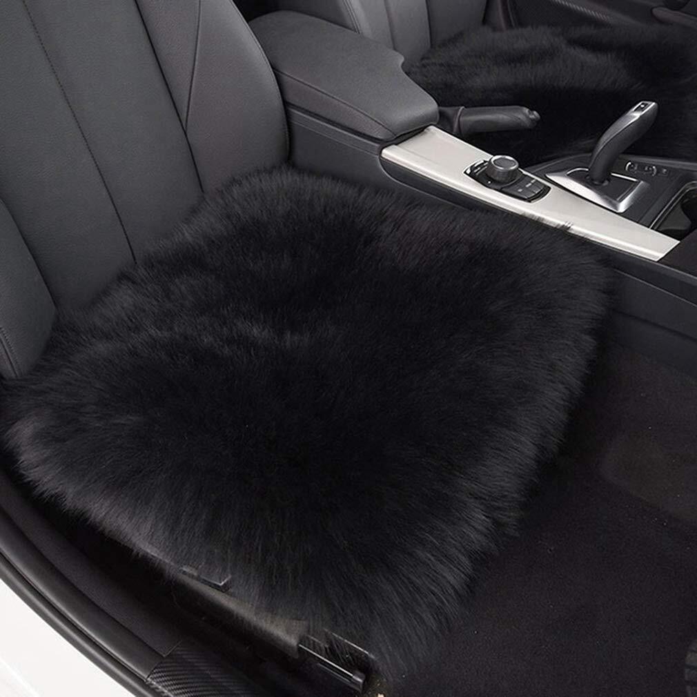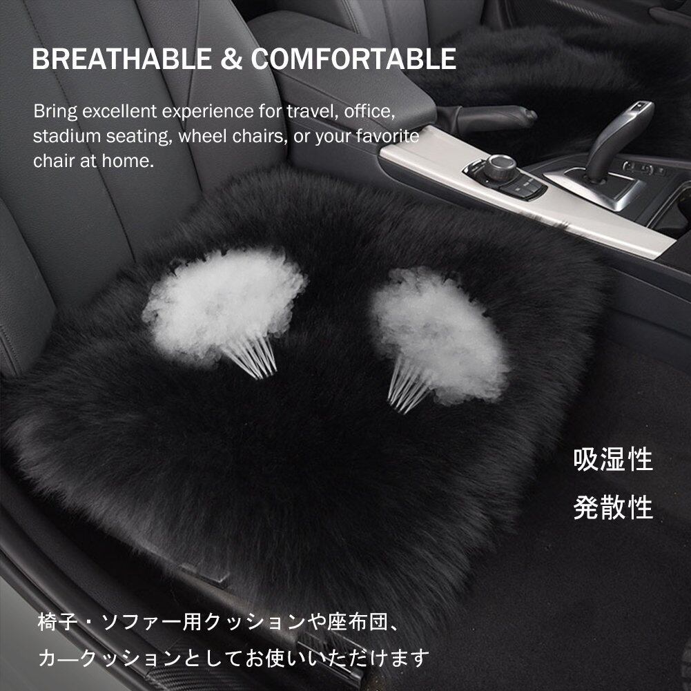 Emfay ムートン 座布団 シートクッション 車用 柔らかい ウール 通気性 ブラック