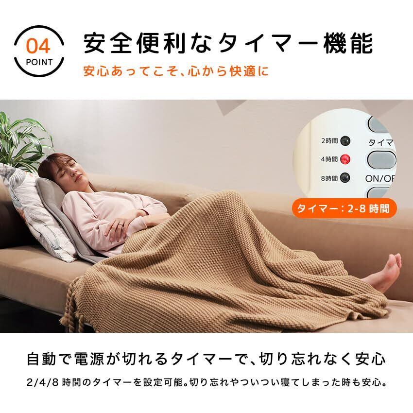 【安全便利なタイマー機能】 2/4/8時間のタイマーを設定可能。切り忘れやついつい寝てしまった時も安心。