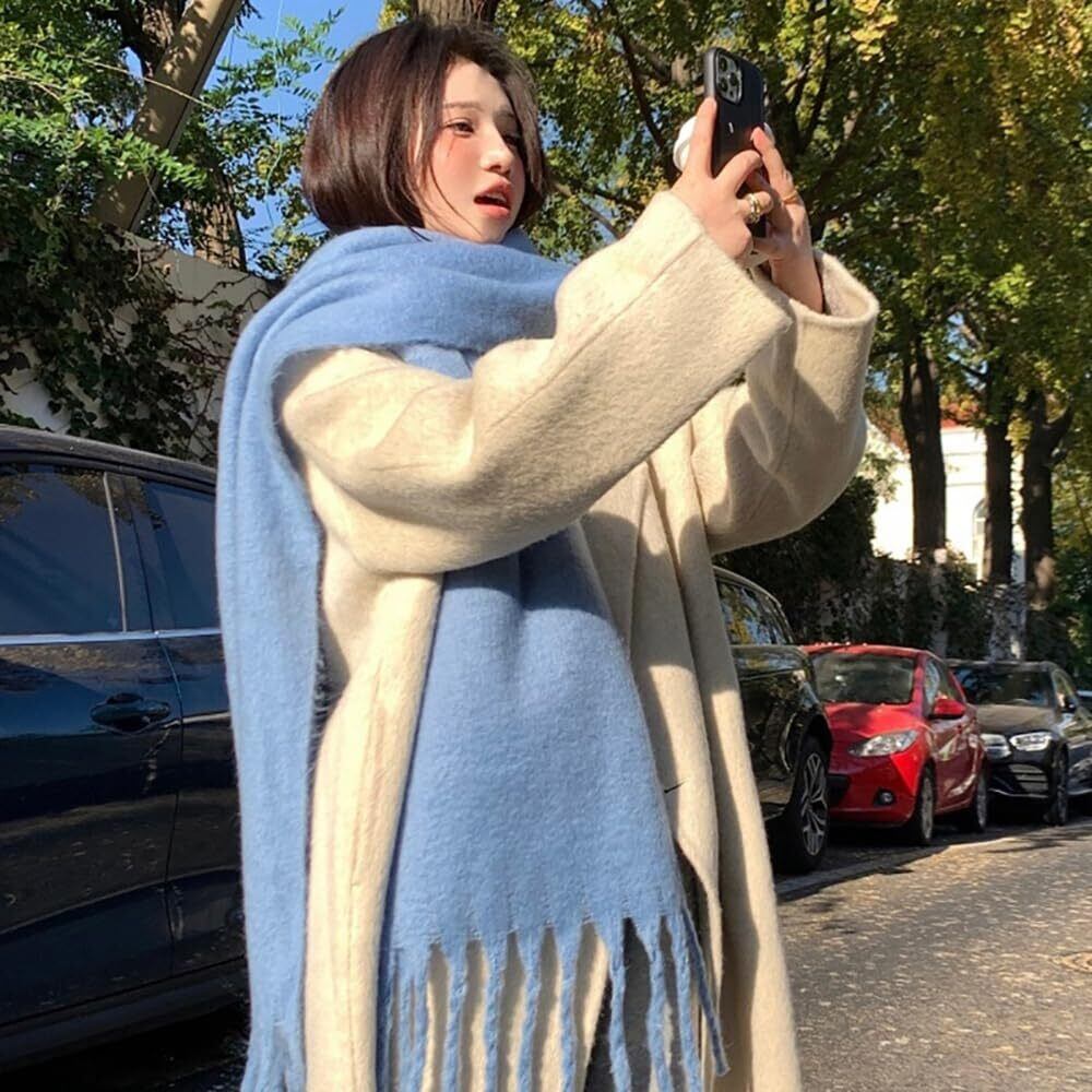 [Wzhiming] マフラー レディース ストール 大判 ストール カシミヤブレンドウールマフラー【レディースメンズ共用】 秋冬 無地 定番 フリンジ生地