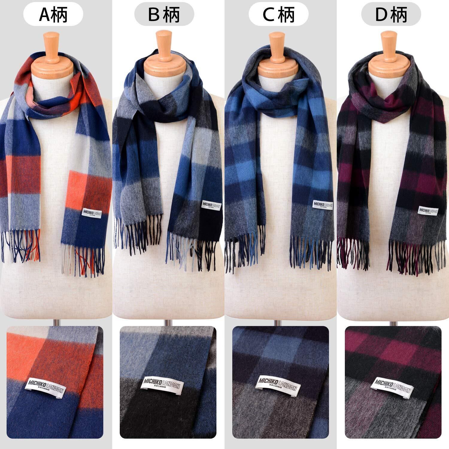 [ミチコロンドン] ブランドマフラー ウール 男女兼用 防寒 ブロックチェック