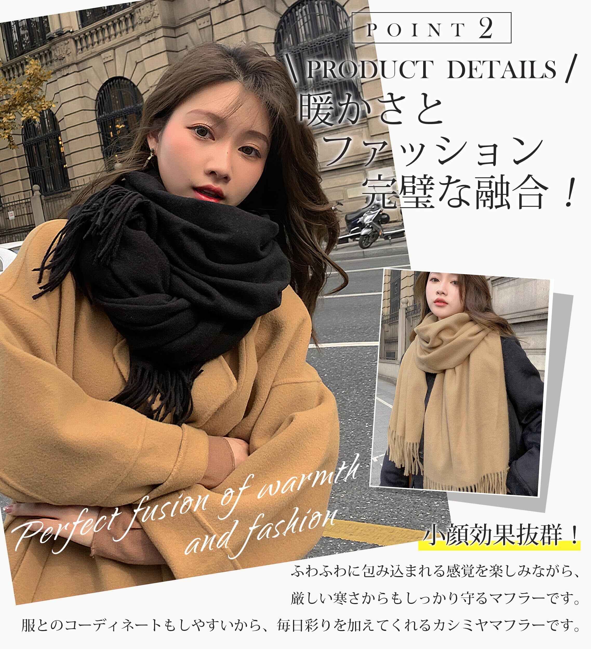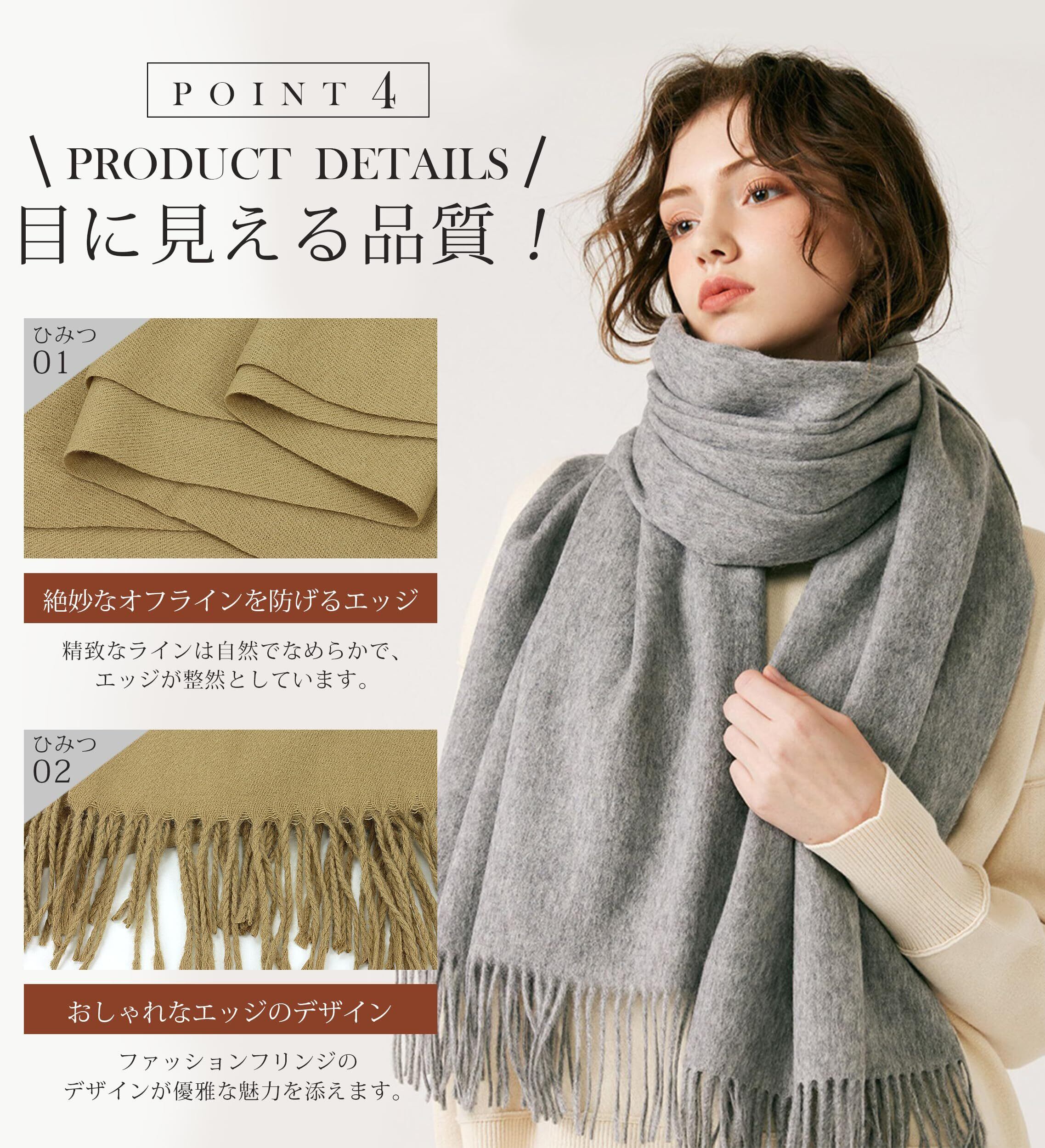 【暖かさとファッションの完璧な融合】 マフラーはゆったりとしたサイズなので、寒い日でも完璧な保温効果を提供します。贅沢な包み込まれる感覚を楽しみながら、厳しい寒さからもしっかり守るマフラーです。レディース マフラーは、洗練されたデザインと優れた保温性を兼ね備えた究極のファッションアイテムです。マフラー レディースはどんなコーディネートにも簡単に合わせることができ、寒さを防ぎつつスタイリッシュに過ごすことができます。日常使いでも特別なシーンでも、 大判ストールが快適さと優雅さをお届けします。