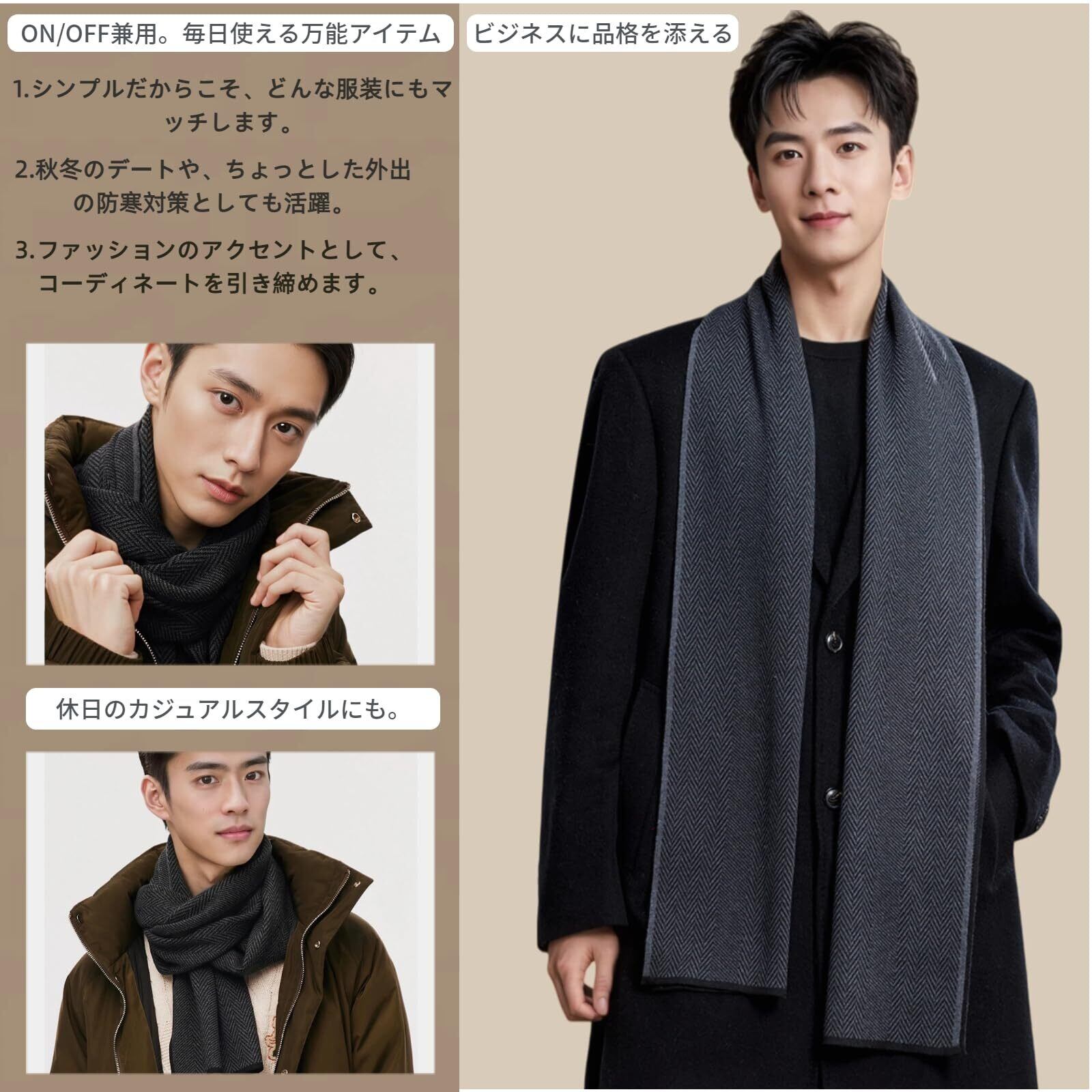 【定番デザイン】商品仕様:長さ180cm × 幅30cm (大切な方へプレゼントや自分へのご褒美に。)高品質素材はど毛玉ができにくい、使っていくうちにベストなやわらかさとなめらかさになっていきます。男性でも女性でも使いやすい全4色のカラーバリエーションです。 長く使えるベーシックなデザインで、プレゼントにもぴったりです。