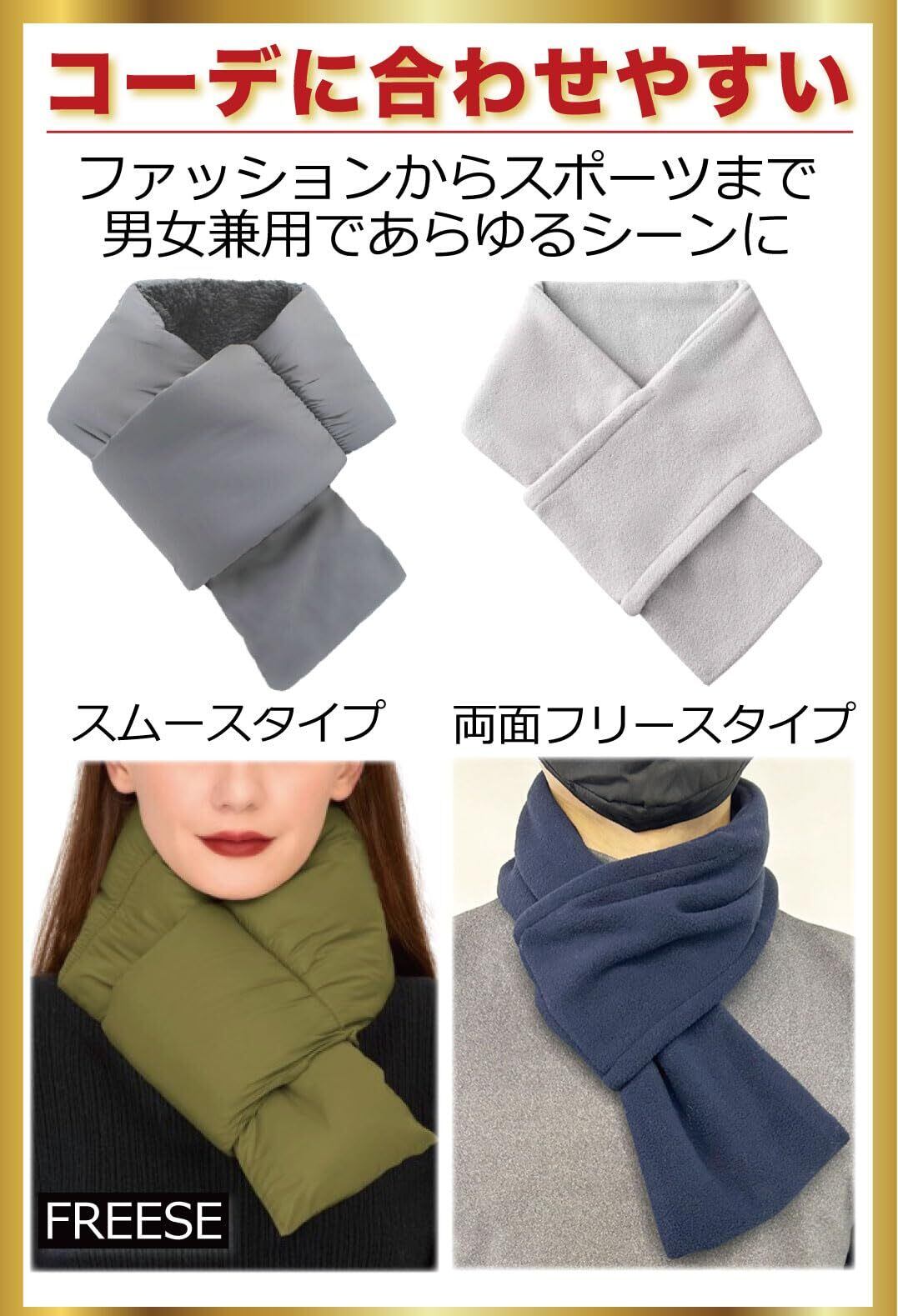 [FREESE] マフラー 防寒 差し込み ストール ショート あったか マイクロ繊維 アウトドア スポーツ 釣り