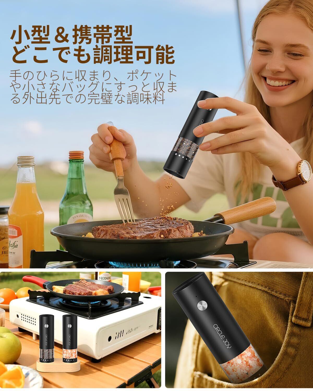 ️ キッチンもアウトドアも OK!ミニ可愛デザイン小ぶりで持ち運びしやすく、キッチンでの日常調理やピクニックの際にも便利に塩・胡椒を挽ける。(※ミニサイズのため、ご注文前にサイズをご確認ください)