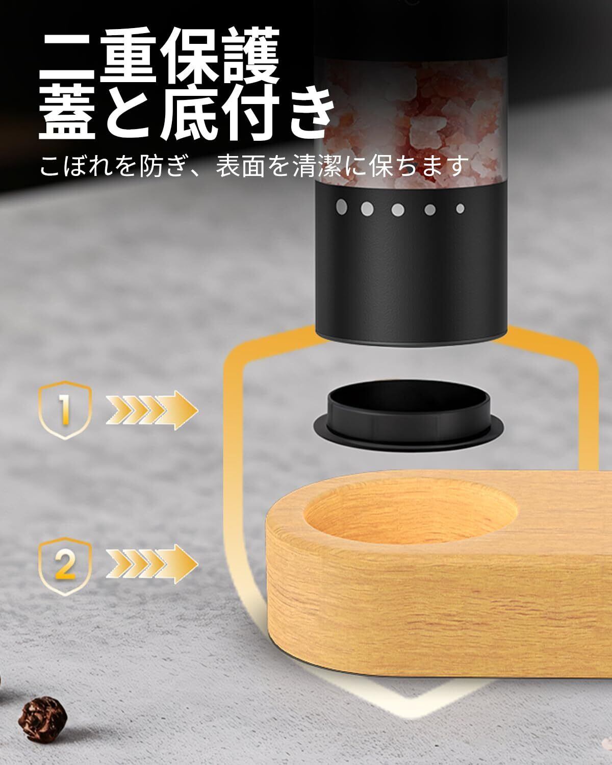 ️片手で操作 - ボタンを押すだけで、この電動ペッパーグラインダーセットは楽でユーザーフレンドリーな操作を提供し、片手で料理を味付けすることができます