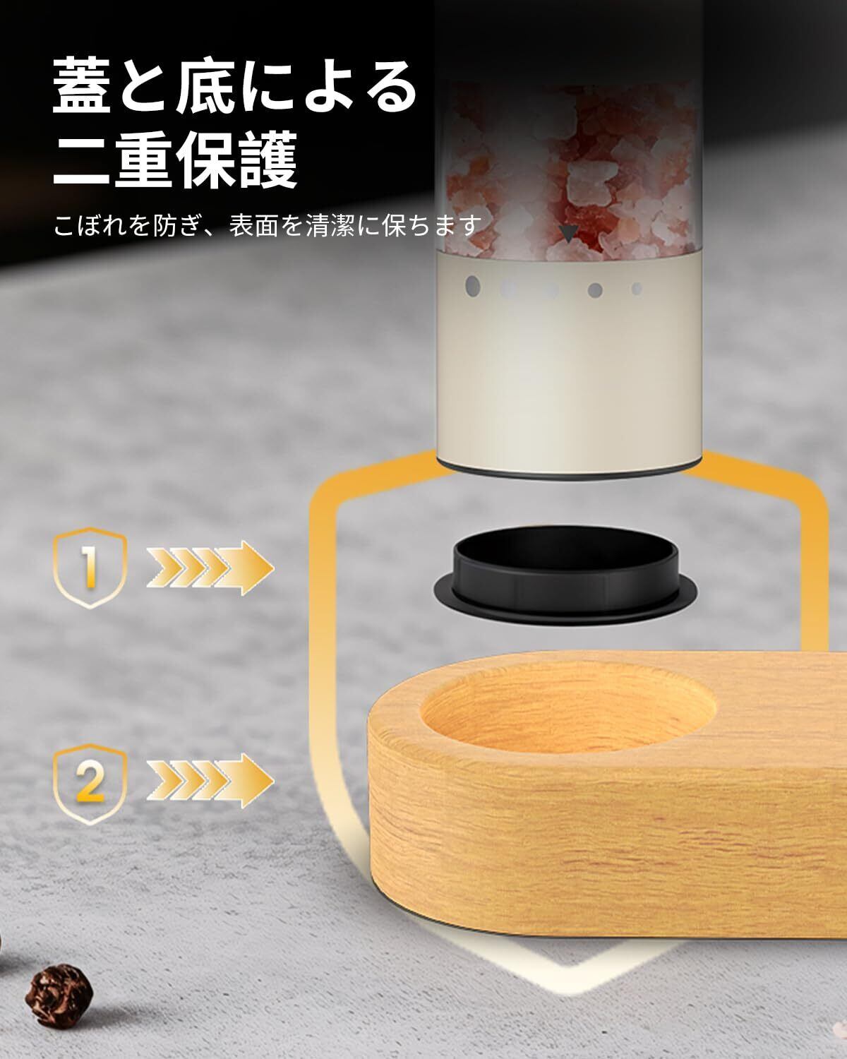 ️片手で操作 - ボタンを押すだけで、この電動ペッパーグラインダーセットは楽でユーザーフレンドリーな操作を提供し、片手で料理を味付けすることができます